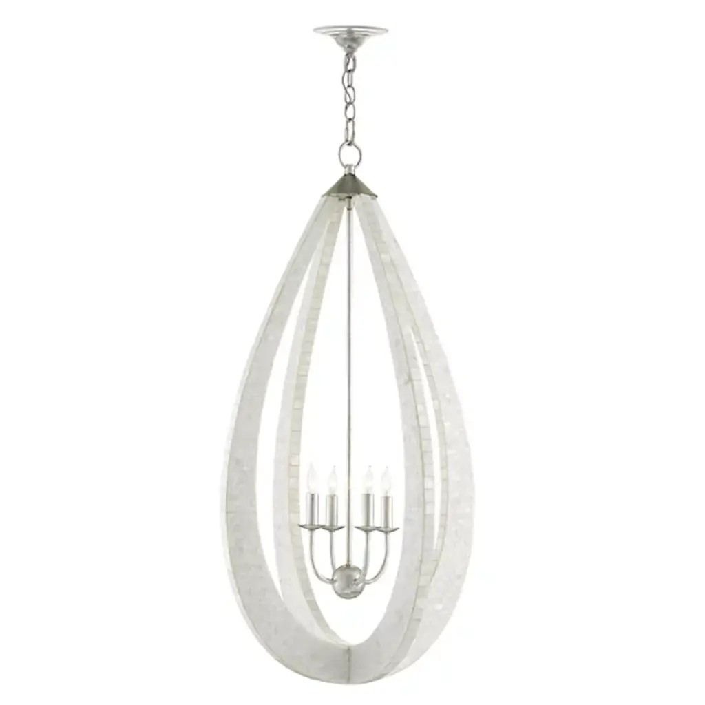 The Arietta Teardrop Chandelier by Currey & Company was created as designer Clarence Mallari looked for a different perspective with the teardrop shape to make it softer in tone. The result is a series of gracefully arching blades that are covered in a hand-applied mosaic by talented artisans for a subtle, sophisticated surface that plays beautifully with light. The exposed lighting arrangement set at its center is supported by a sleek metal stem, providing plenty of illumination to its surroundings.