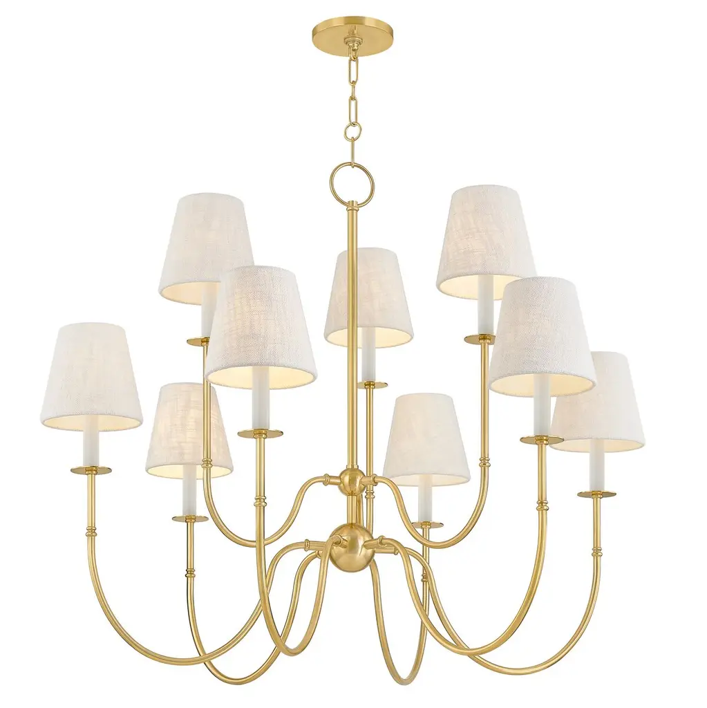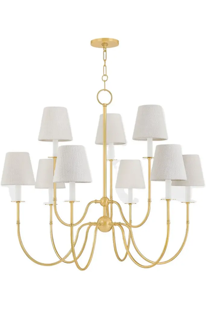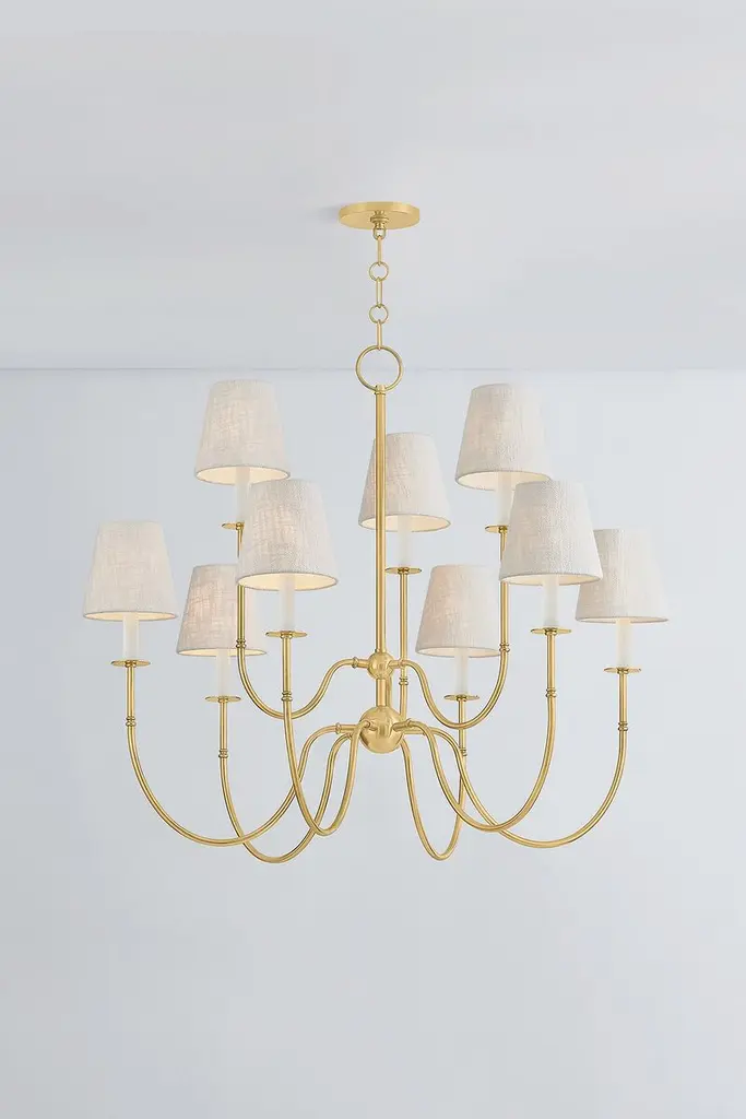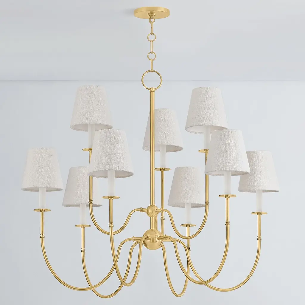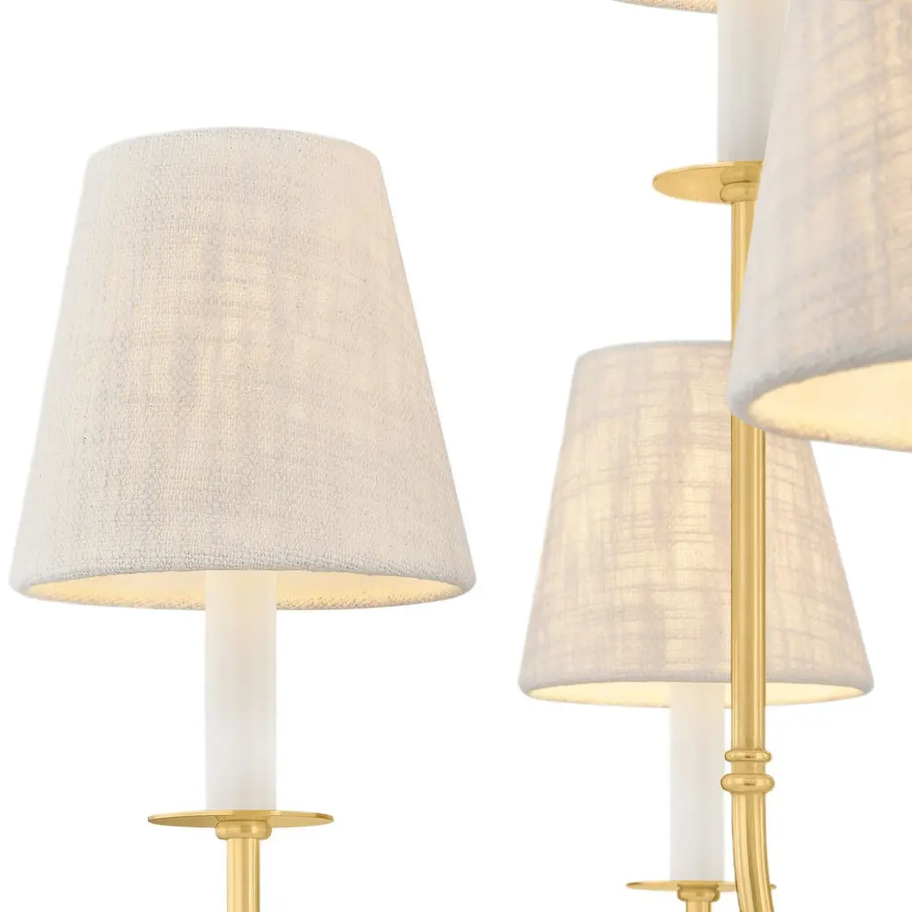 Vintage meets modern in the Ariselle family. Traditional Victorian metalwork details, including wide bobeches, are paired with contemporary candle sleeves and short white linen shades. The slender, elongated J-arms feature a dramatic swoop. Whether as a sconce or chandelier, Ariselle provides a fresh update to traditional forms.