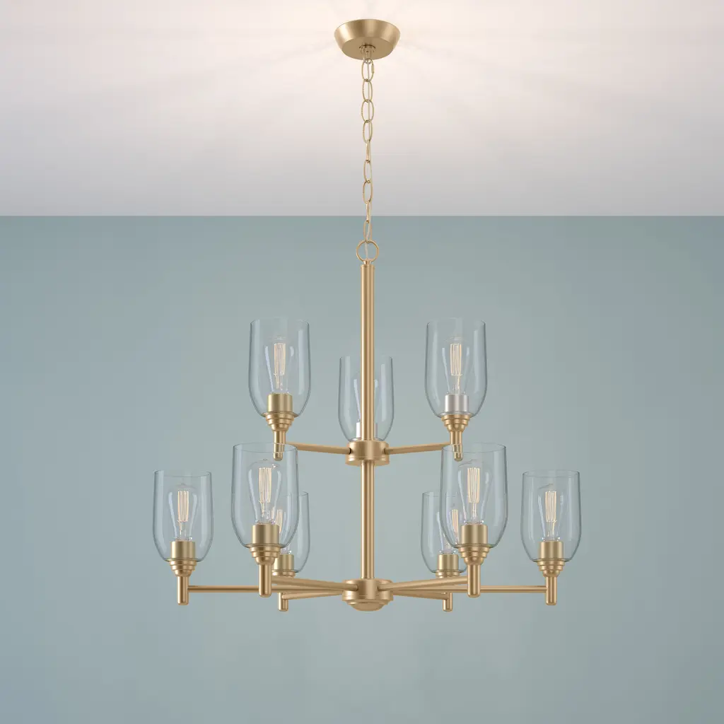Arlett 9 Light 30 Inch Modern Gold Chandelier Ceiling Light