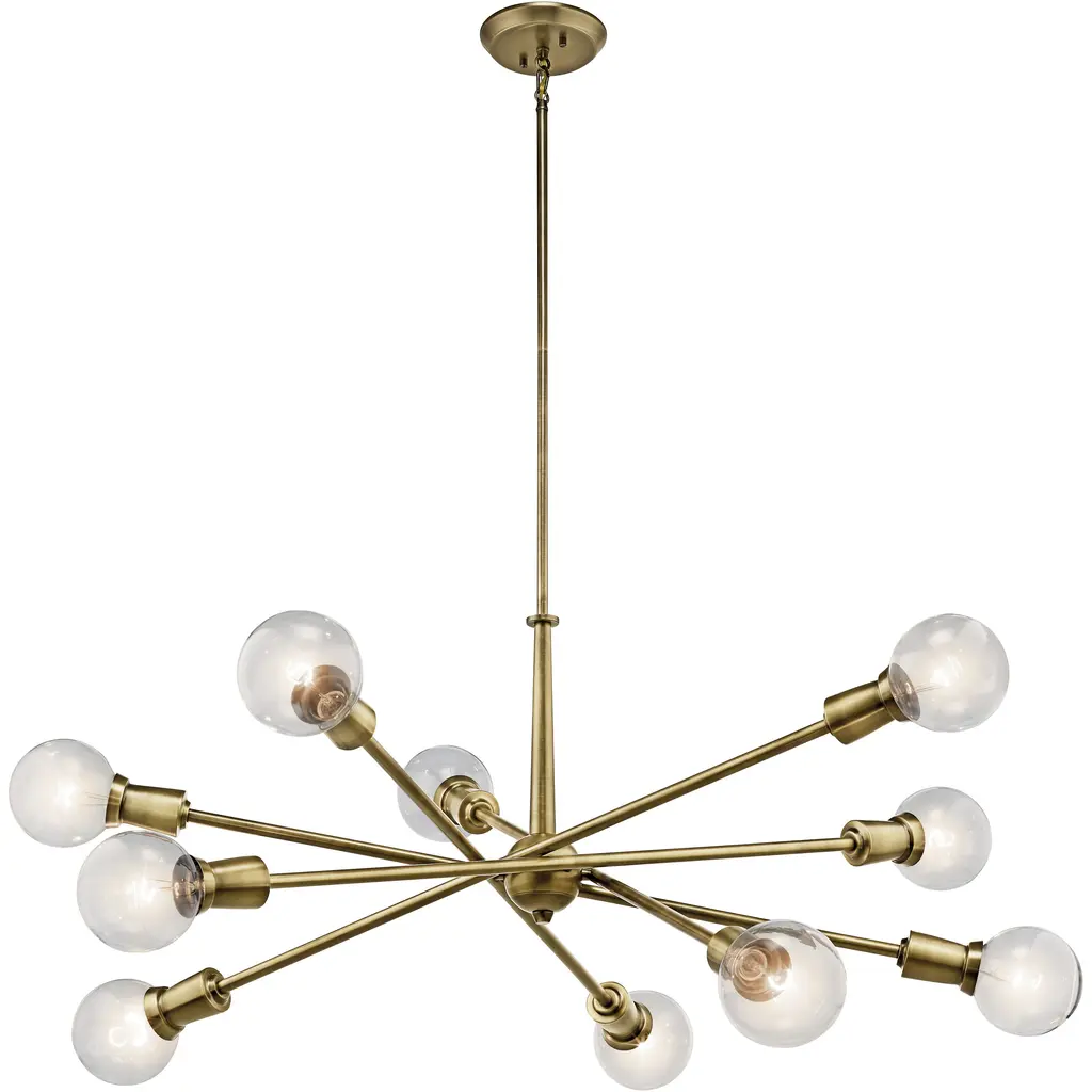 Armstrong 10 Light 47 Inch Natural Brass Chandelier 1 Tier Large Ceiling Light, 1 Tier Large
