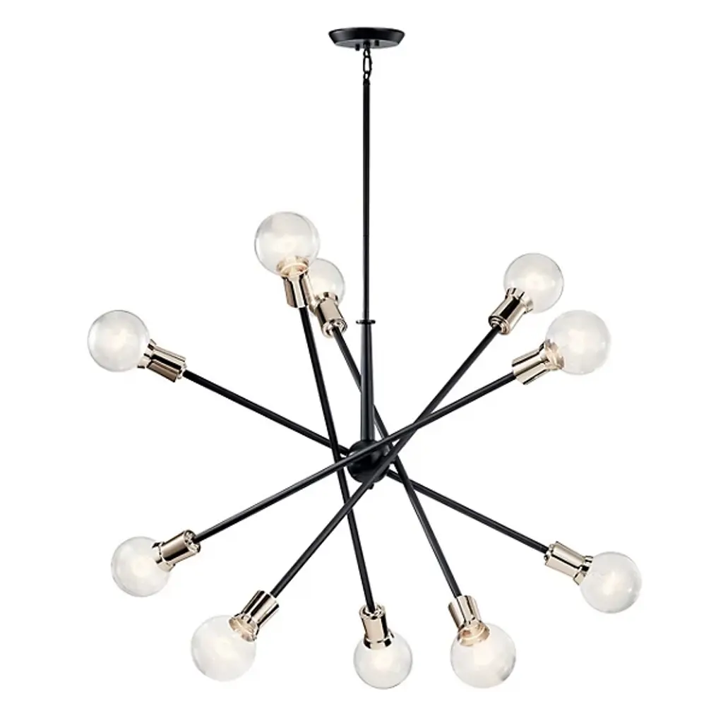 This Mid-Century 1 light rectangular chandelier from the Armstrong collection features a in.sputnikin. design with adjustable arms allowing you to customize the light for just the right look.
