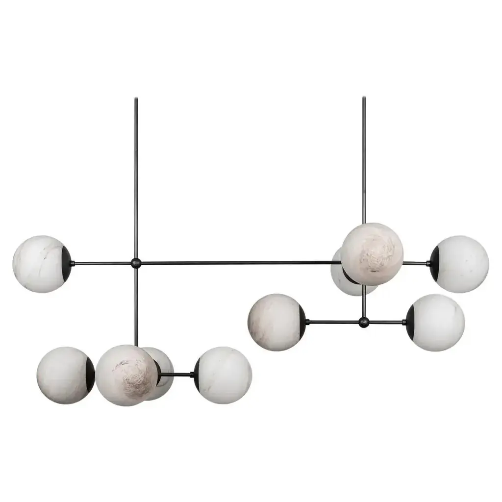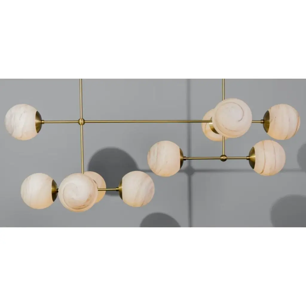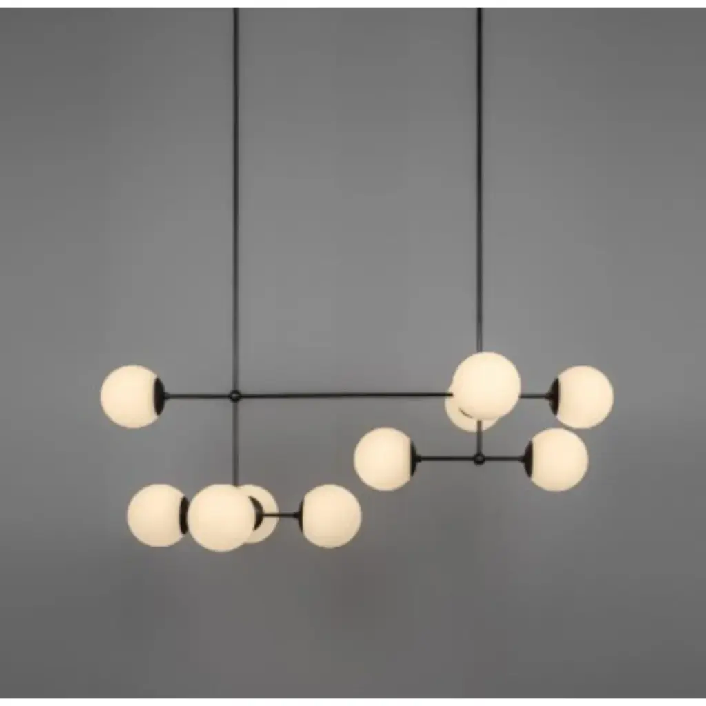 Armstrong linear chandelier by schwung dimensions: d163.5 x h 163 cm materials: brass, opal glass weight: 16.8 kg schwung is a german word, and loosely defined, means energy or momentumm of a positive manner. Synonyms: verve, zest, panache, momentum. Mission developing lighting fixtures through simple and timeless materials, sustainably; we are committed to creating quality products that last. Beginning with the design we are constantly refining aesthetic and function. Both in the lamps themselves and throughout the manufacturing process we pursue a holistic approach to efficiency, and the reduction of environmental impact. Concept schwung is a lighting concept, connecting aesthetic and quality through matter. An exploration of history, forms and function, elegantly fulfilling an essential need of modern life, capturing light. Our pieces play with architecture or create spaces of their own. Founded by dominique sente (belgium) and rudi nijssen (netherlands). What began as a curiosity for objects, a venture in collecting, curating and trading antiques—became a passion to create original designs. Process from the beginning, schwung home has striven for cutting-edge and quality lighting, handcrafted in europe. Emphasising brass and glass, which are not only durable but can be reused indefinitely, our lamps are 98% recyclable. Today the company operates out of an integrated design and manufacturing facility in poland. This local approach allows us to significantly shorten the product lead time and greatly improve quality standards. All our lamps can be wired according to each country. If sold to the usa it will be wired for the usa for instance. up to 250v (europe/uk standard).