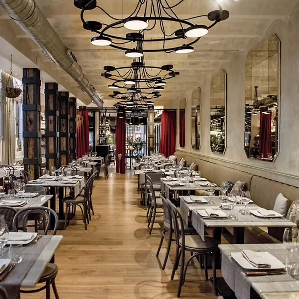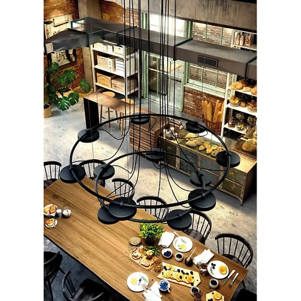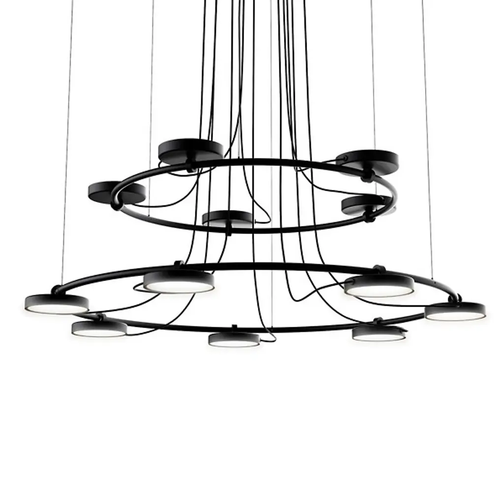 The Aro 2-Tier LED Chandelier by Estiluz brings a dual-layer of illumination to spaces with this contemporary piece from Barcelona-based industrial designer Jordi Blasi. Conceived to operate in a range of environments, this adaptable light source sets two bold halos over one another, each supporting adjustable circular heads with acrylic diffusers. Rotatable to up to 106°, this chandelier offers a handsome way to deliver a source of illumination that can be manipulated to match its surroundings.