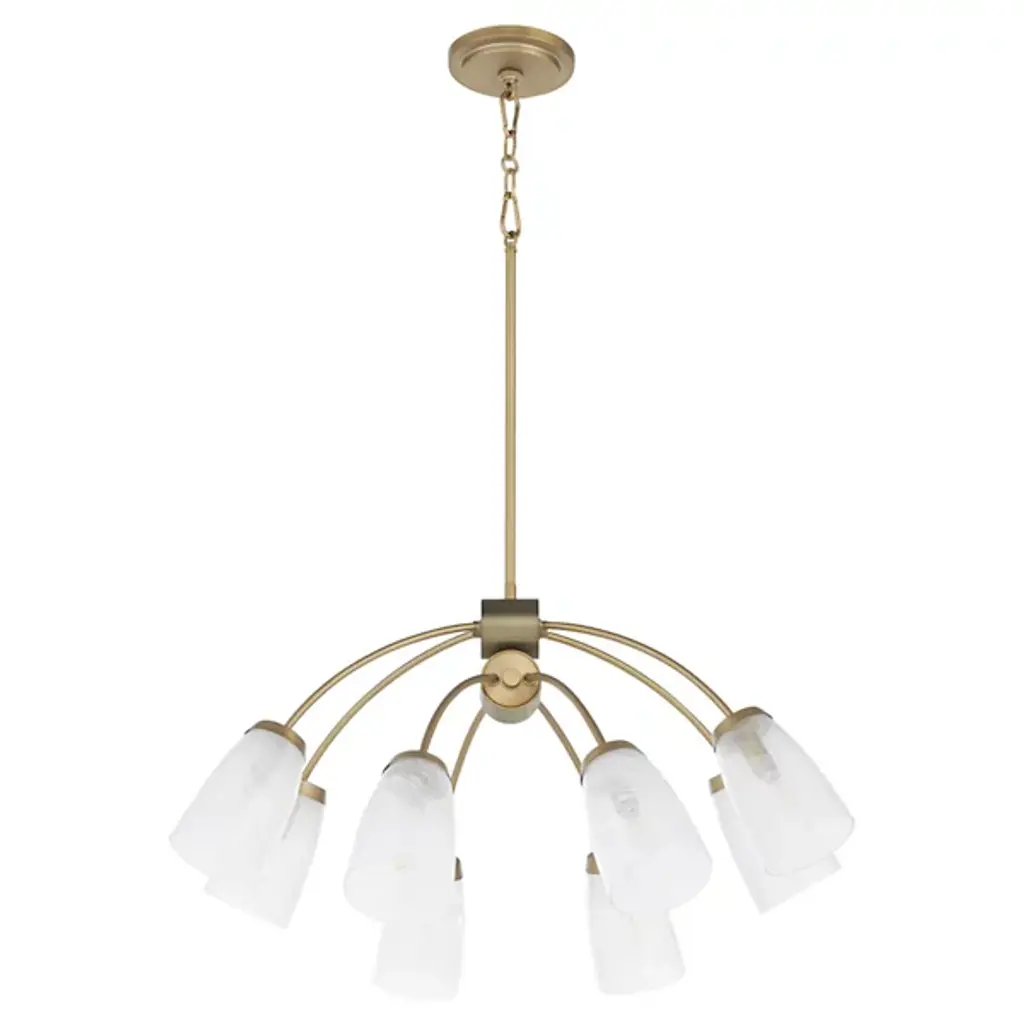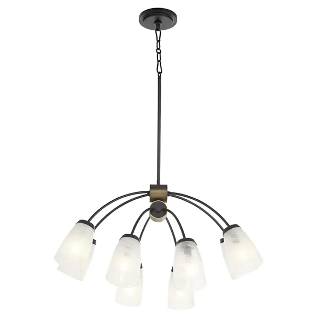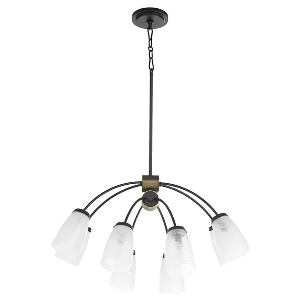 The Arpeggio Chandelier from Quorum International brings architectural interest through its fusion of angles and arches. The cubical frame houses four light sources, while delicate curved arches crown the design. With adjustable hanging length, this pendant adapts perfectly to your space requirements. It is a standout choice for entryways, dining spaces, or living areas where you want lighting that doubles as art. The luminaire’s dimmable feature allows you to adjust the mood from bright to intimate.