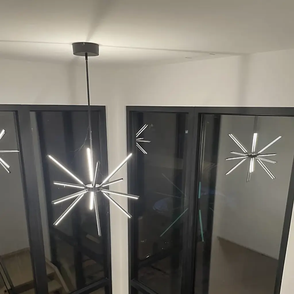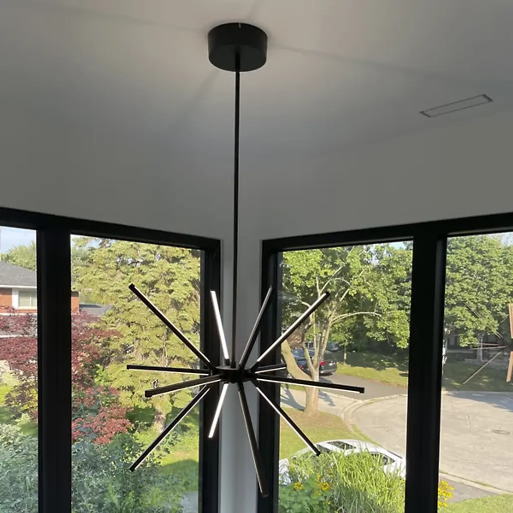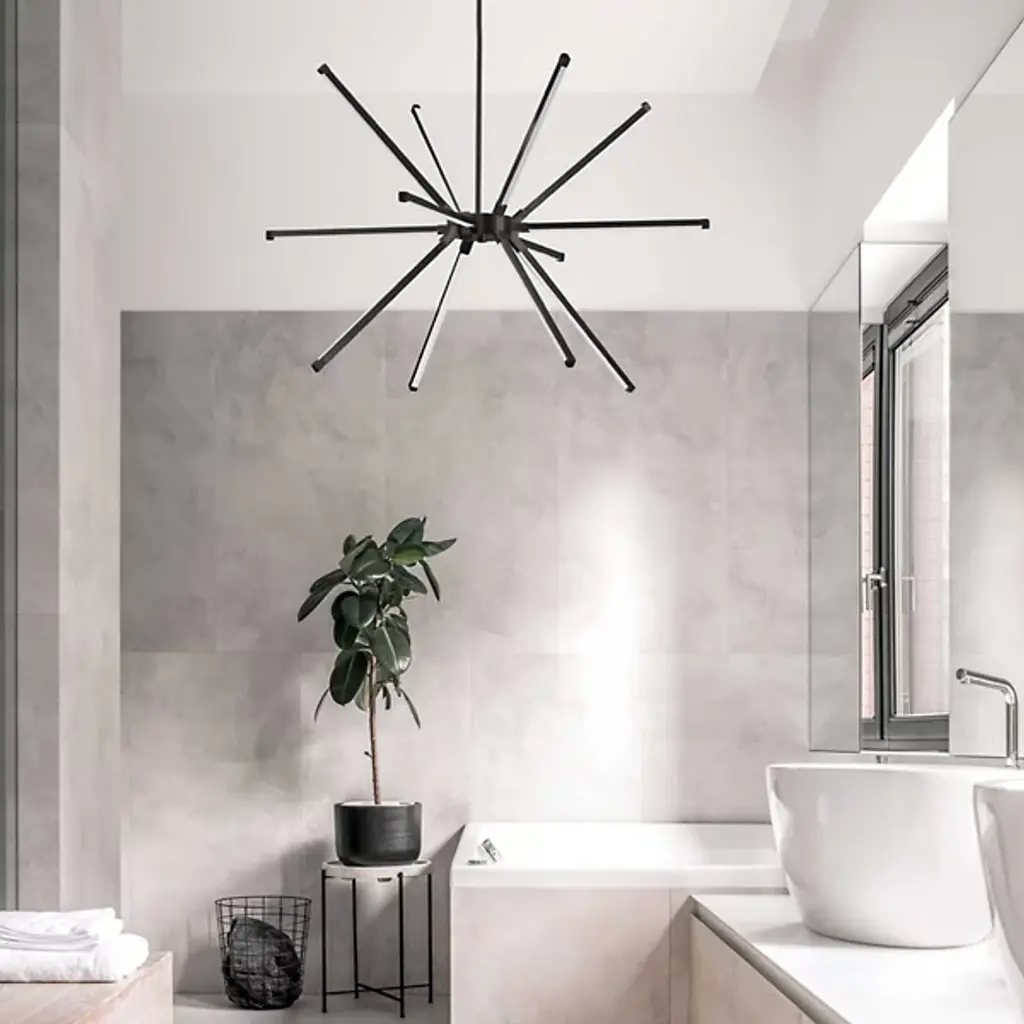 The Array LED Chandelier by Dainolite is a sleek and minimalistic update of the recognizable sputnik style fixture. A single down rod descends to hold a metal disk that an array of slender, beautifully finished, metal arms extend from. Each arm is neatly capped at their end, lending a tailored look to this chandelier as acrylic diffusers evenly filter a layer of energy-efficient light onto surroundings, dressing up rooms with a bright and elegant touch.