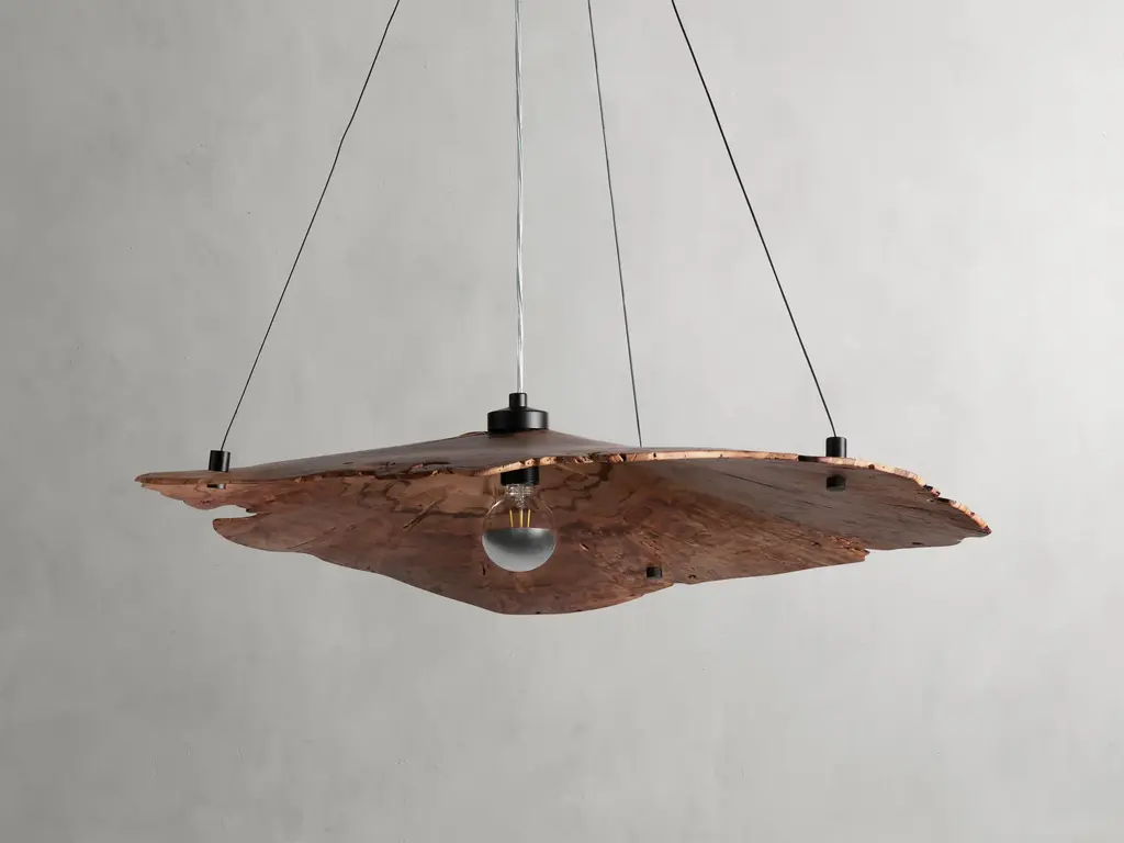 Celebrate the natural beauty of raw materials with our Arruga Collection, featuring salvaged milpa wood with every organic crack and grain pattern on display. Our imaginative artisan partners in Mexico slice the wood and leave them out in the sun to dry, creating the natural dome shape. Paired with matte black hardware and a unique metallic dipped bulb, Arruga is a showstopper for any space.