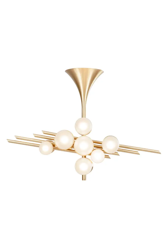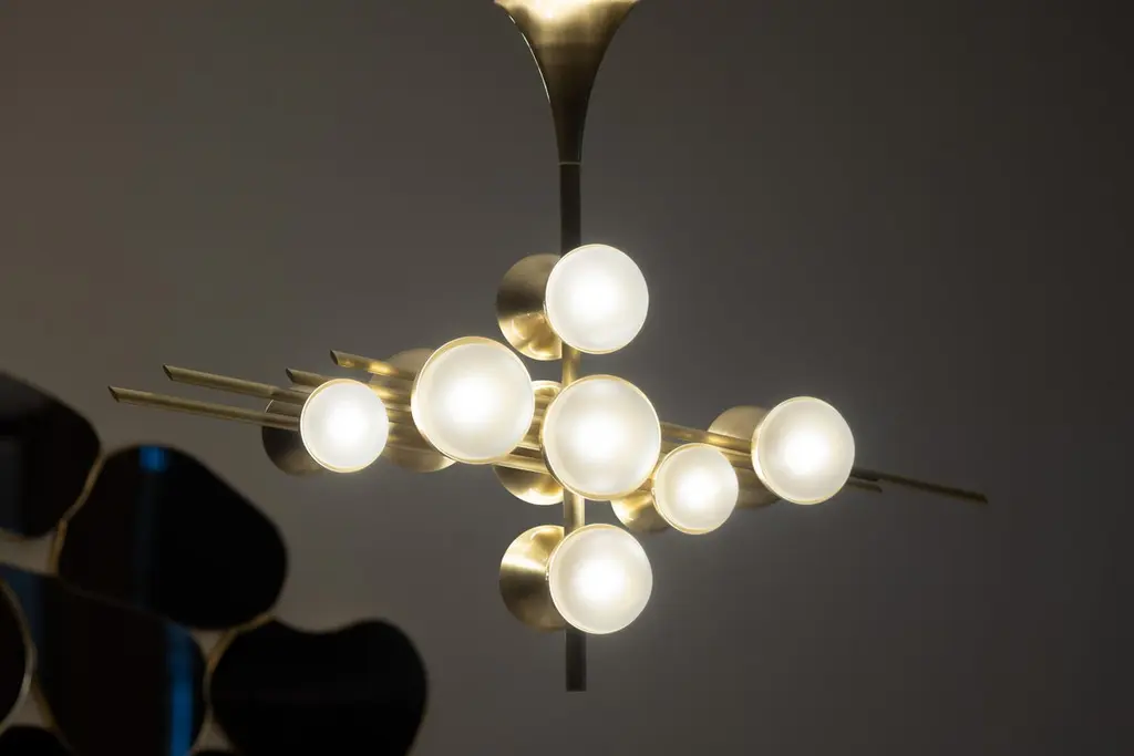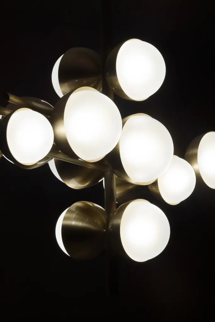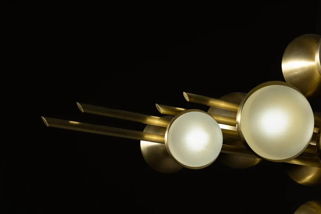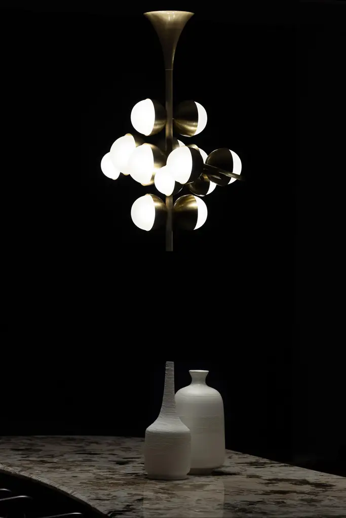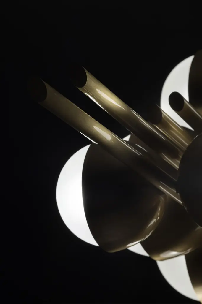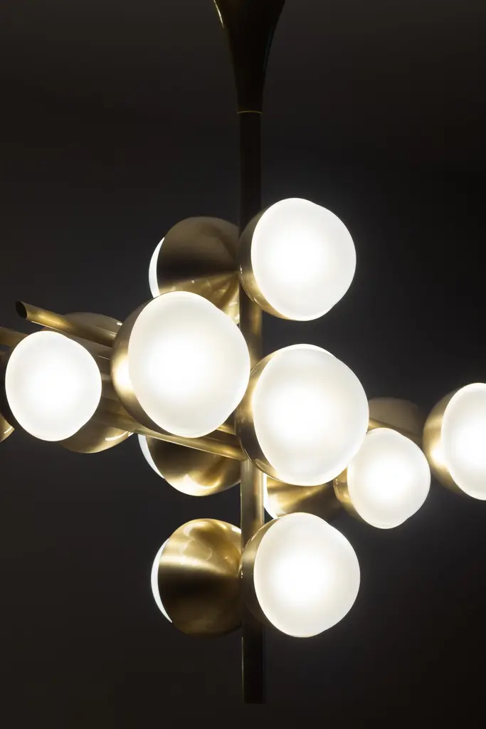 Flute Suspension lamp, Modern Collection, Handcrafted in Portugal - Europe by Greenapple.The Flute ard deco chandelier is a statement lighting piece that brings harmony to any space, requiring no musical sheet for one to appreciate its design. Crafted in brushed brass and adorned with frosted glass details, this art deco chandelier captures the essence of music through its stunning design, creating a graceful dance between light and form.Flute Suspension Lamp Material CodesME006 Brushed brass; high-gloss finishEL003 G9 LED lampGL013 Frosted glassHandcrafted in Portugal - Europe by GreenappleUnique by design, Crafted by peopleFounded in 2005 by Sérgio Rebola and Rute Martins, Greenapple designs and produces in-house luxury furniture for exclusive customers worldwide.Our own in-house production facility allows us to be obsessed with detail, and gives us the freedom to dedicate ourselves to the most demanding tailor-made and customized work. As Rute designs all the unique pieces, Sérgio assures the high-quality standards through the whole process - from design to production; from production to your home. Fine craftsmanship, whether perfected by experienced hands or state-of-the-art machinery is quintessential in delivering top quality experiences.