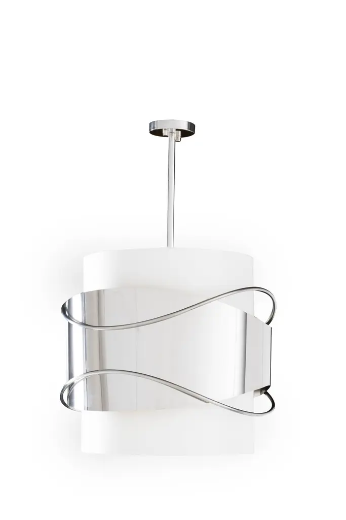 Return suspension lamp, Modern Collection, handcrafted in Portugal - Europe by GF Modern.To entangle the right moments with the right company, Return becomes the center of the scenic location that we call a dining room. Made of polished stainless steel and with a white satin lampshade, this suspension lamp is the fundamental choice for tasteful living. A new interpretation of chandelier design where the Swarovski crystal beads catch the attention of anyone who enters the room.Return Suspension Lamp Material CodesME001 Polished stainless steelM103851 White satin fabricFI163 Swarovski crystalEL002 E27 LED lampHandcrafted in Portugal - Europe by GreenappleUnique by design, Crafted by peopleFounded in 2005 by Sérgio Rebola and Rute Martins, Greenapple designs and produces in-house luxury furniture for exclusive customers worldwide.Our own in-house production facility allows us to be obsessed with detail, and gives us the freedom to dedicate ourselves to the most demanding tailor-made and customised work. As Rute designs all the unique pieces, Sérgio assures the high-quality standards through the whole process - from design to production; from production to your home. Fine craftsmanship, whether perfected by experienced hands or state-of-the-art machinery is quintessential in delivering top quality experiences.