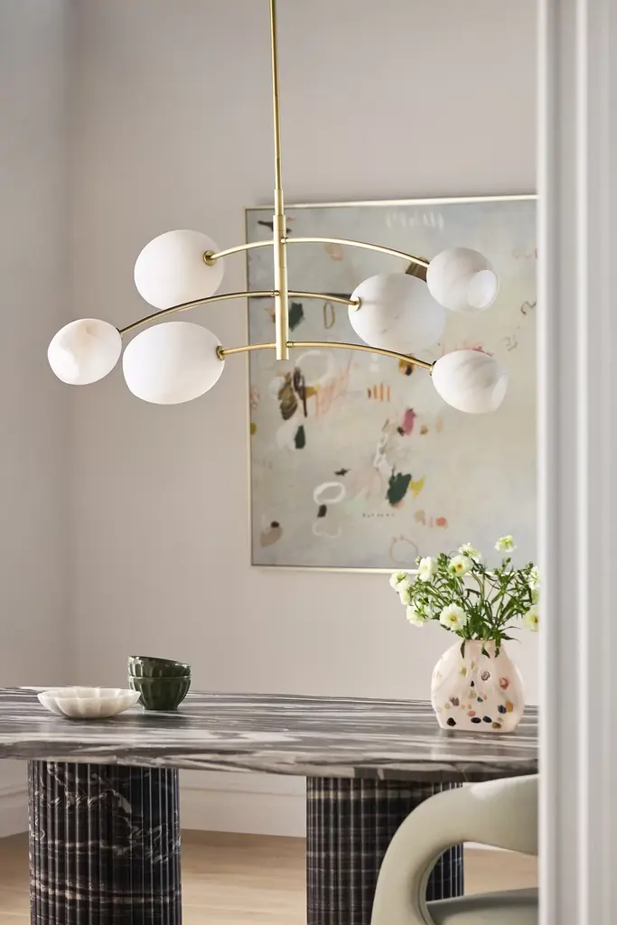 Blending sleek design and artisan-crafted glass, this gracefully balanced chandelier features open-ended Alabaster-like glass globes, creating a captivating and unique ambiance. *This item is UL listed, meaning it has been tested and approved to meet the government-regulated safety standards for the USA. Use with electrical outlets 110-120v or lower, as anything higher can cause fire or injury. If you're purchasing this item for use outside of the United States, employ the adapter and voltage converter suited for your country.*