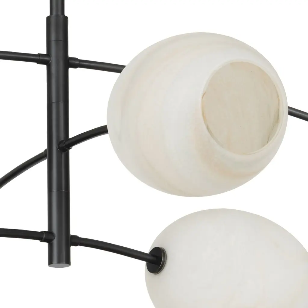 Artemis blends sleek design with the allure of artisan-crafted glass. Its open-ended glass globes add moody sophistication, creating a captivating and unique ambiance. Inspired by the concept of a mobile, Artemis features gracefully balanced arches, making it both a functional light source and a stunning piece of modern art.