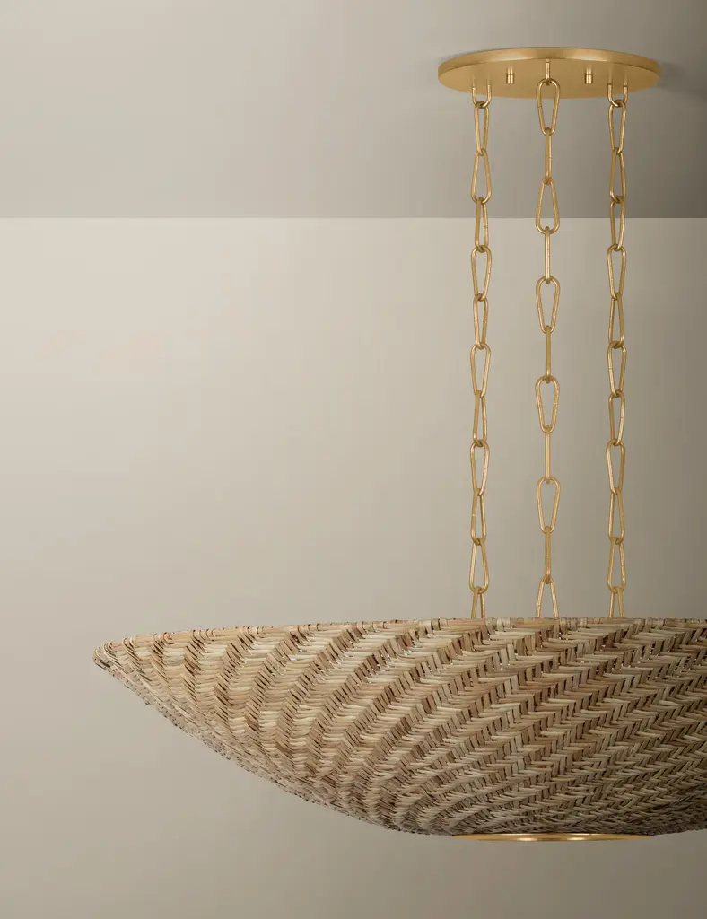 Artero pairs natural rattan texture with vintage-inspired hardware for a look that's grounded yet refined. A diagonal wicker weave brings rich dimension and warmth to this woven chandelier. Hang it in larger spaces like dining rooms or living areas to anchor the room with casual elegance.