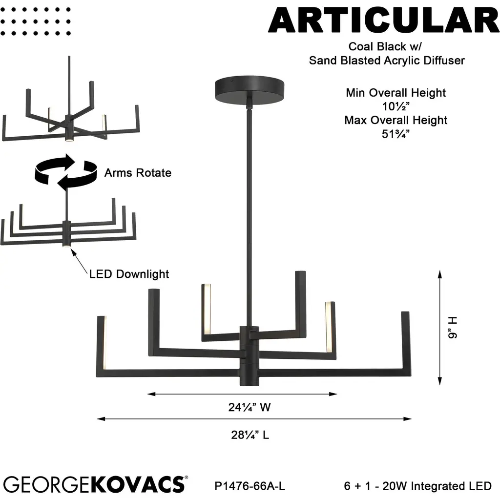 This 6 light Chandelier from the Articular collection by George Kovacs will enhance your home with a perfect mix of form and function. The features include a Coal finish applied by experts. This item qualifies for free shipping!