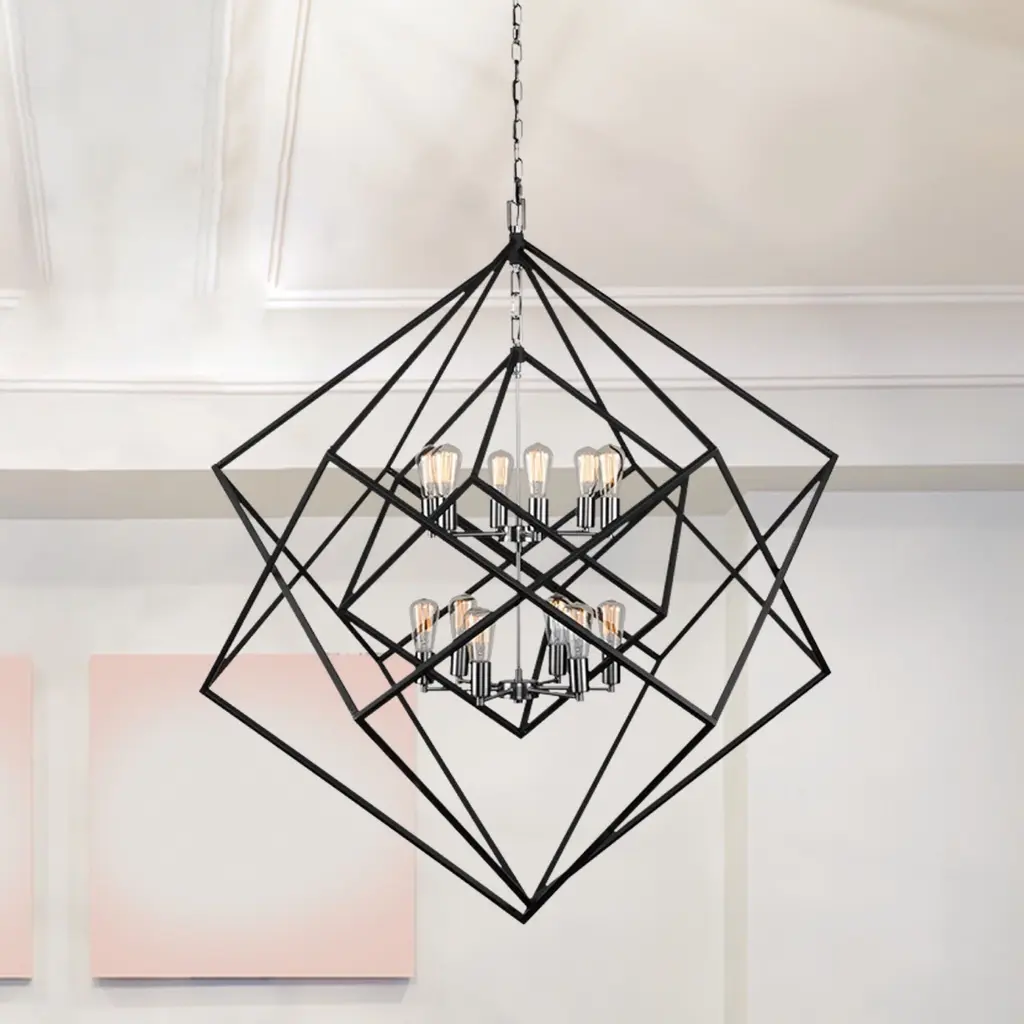 The "Artistry" collection features striking geometric square frames, offering a modern and sophisticated design. Each piece showcases clean lines and a bold structure, making it a standout addition to any contemporary space. The open-frame design allows light to playfully interact with its surroundings, creating captivating shadows and visual interest. Perfect for dining areas, living rooms, or entryways, the "Artistry" collection adds an artistic flair to any interior.