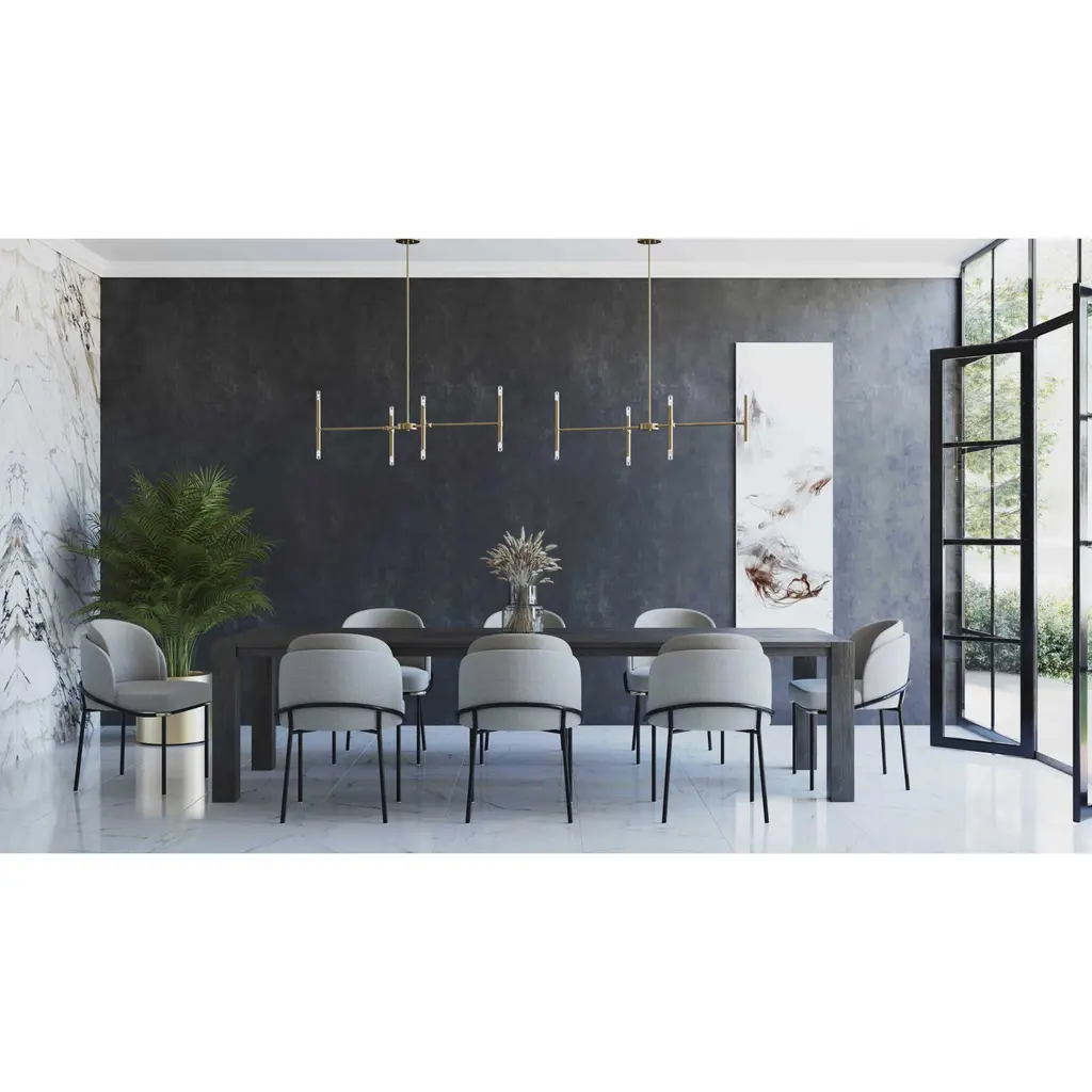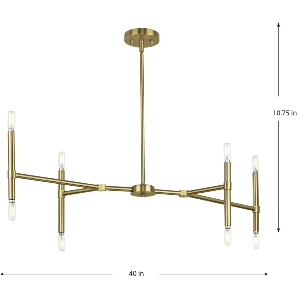The Arya Collection has a lively essence created by the rhythm of slender, graceful features. The style offers modern appeal with understated elegance.Staggered arms coated in a soft brushed gold are suspended from a central axis, defining this bold architectural form. The impressive linear chandelier brings a modern flair to ceilings over dining room tables, kitchen islands and bars in luxe, mid-century modern and contemporary settings. This fixture is part of the Progress Lighting Design Series, a lighting collection offering fashionable styles and affordable luxury lighting for the home.