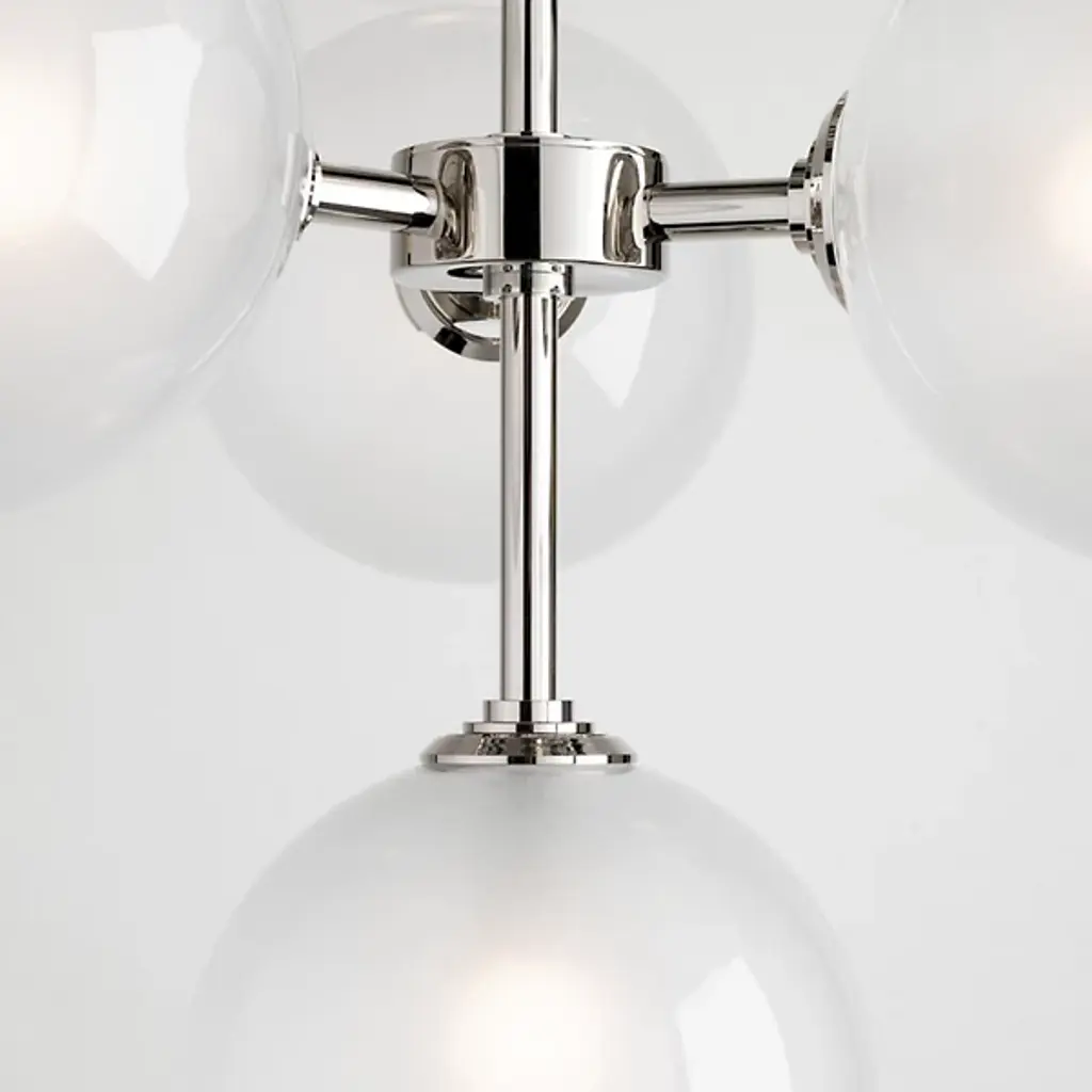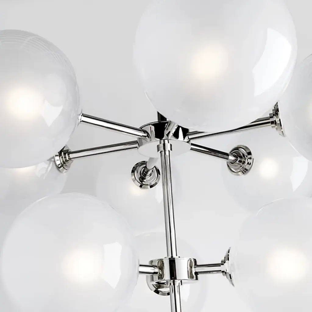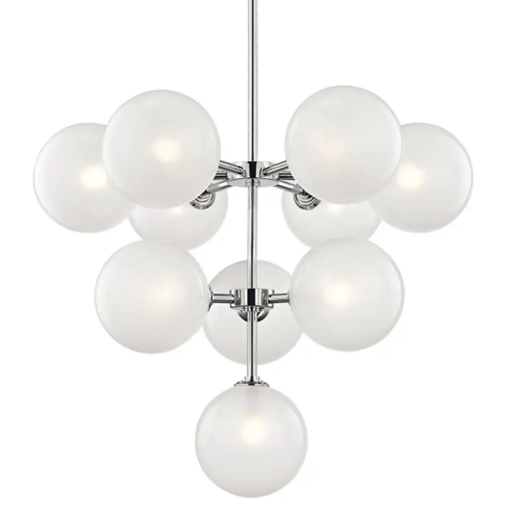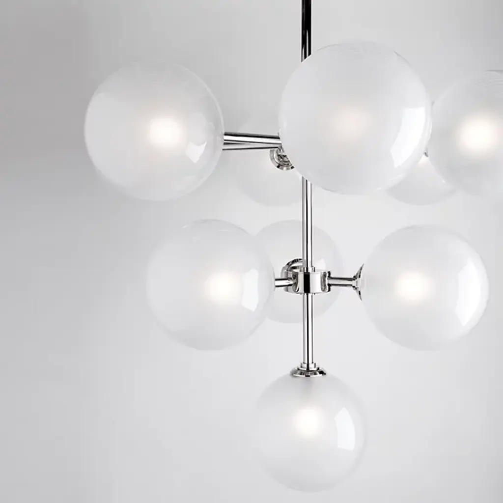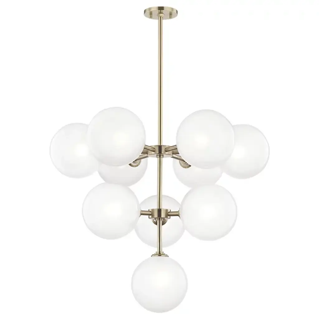 Look to the Ashleigh Chandelier by Mitzi to tell a new symmetrical story. This design showcases 10 Glass globe shades with etched interiors for warm LED lighting without the glare. This newer, relaxed version of a chandelier has no limits for functionality and eases into any space, from a bohemian bedroom to a contemporary dining room.