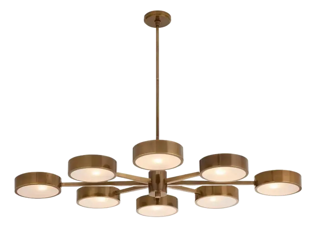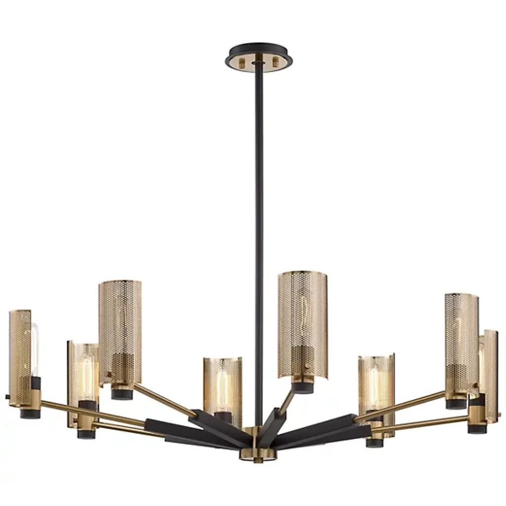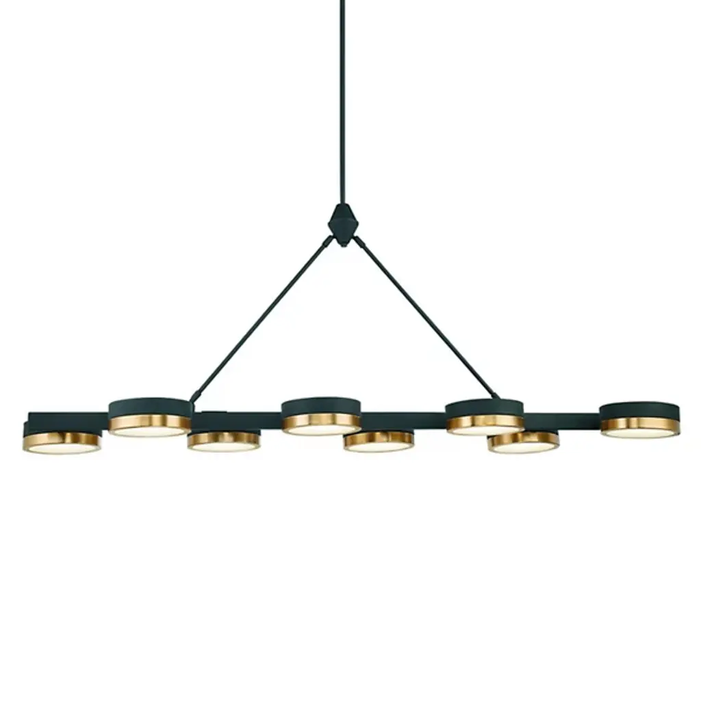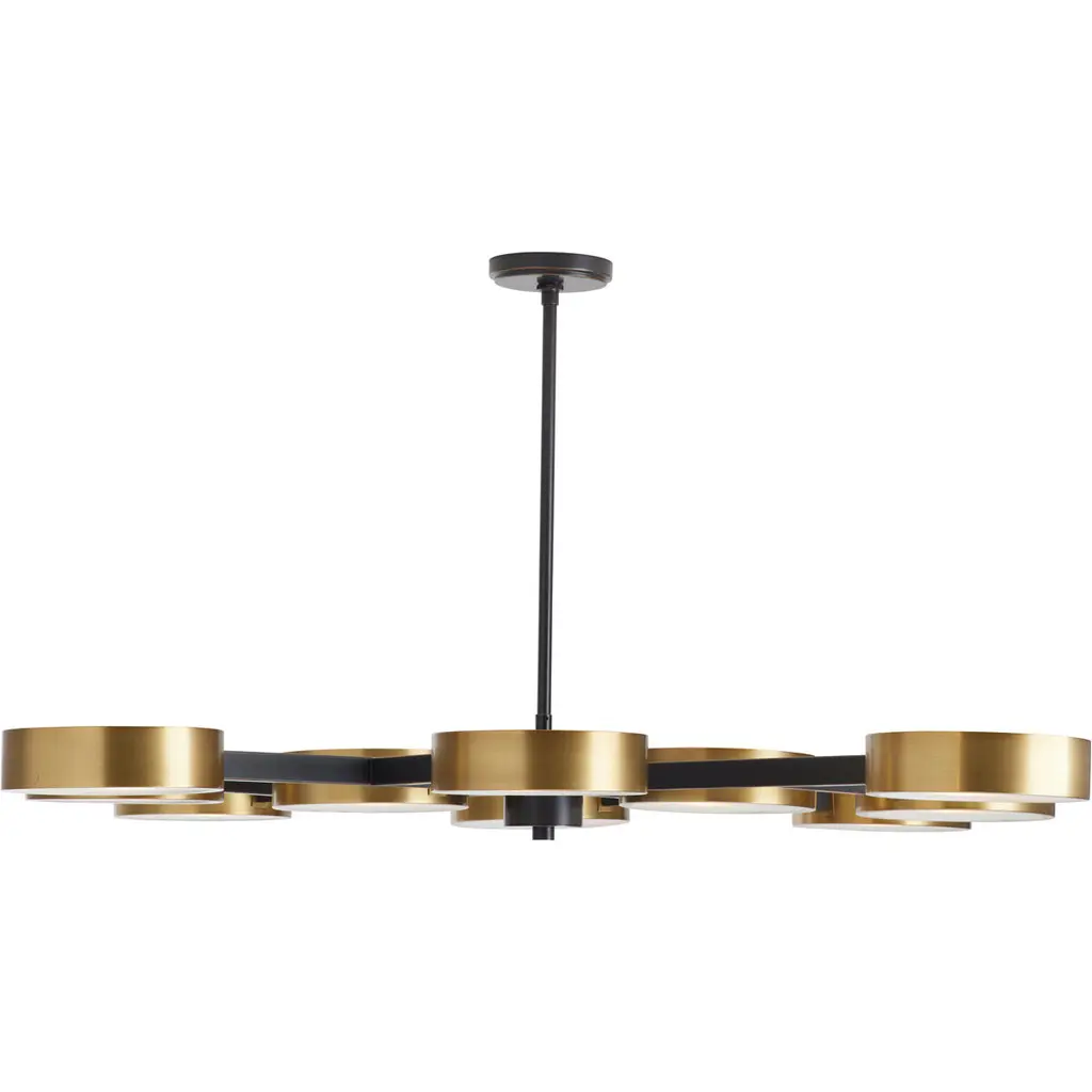 Sculptural and stylish. The Ashor LED 2 Tier Chandelier is a mid-mod inspired and contemporary composition presented by Savoy House. A two-tone contrast of matte black and warm brass adorns the metallic bodice. Integrated, energy-efficient LED illumination diffuses through the beautiful detail of the crushed crystal shade embedded into each disc. It drops from the ceiling on a matte black canopy and adjustable down rod, making a bold statement and brightening the surroundings beautifully.