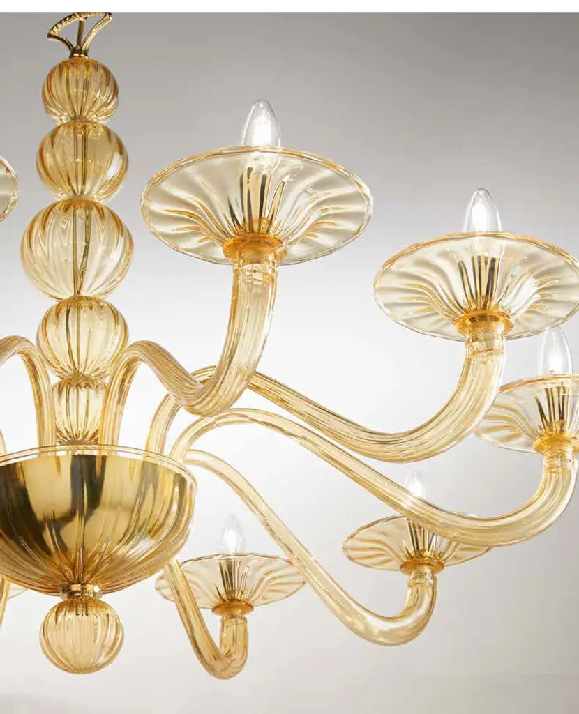 Asia is a chandelier in blown glass, an object meticulously worked, selecting a range of metallic finishes, glass colours and precious details that make it unique and handcrafted.1004/10: 10 bulbs (E14 - 40W)