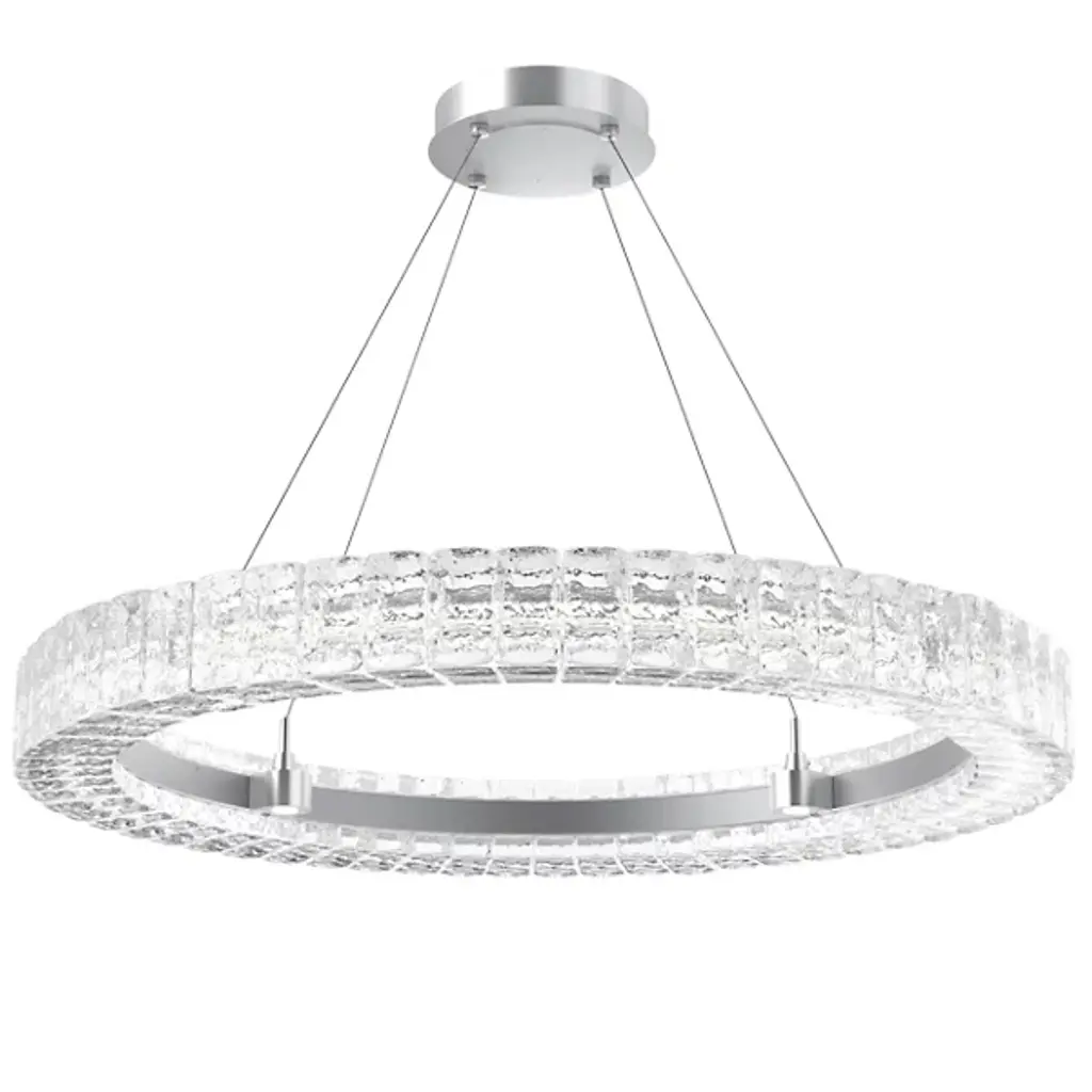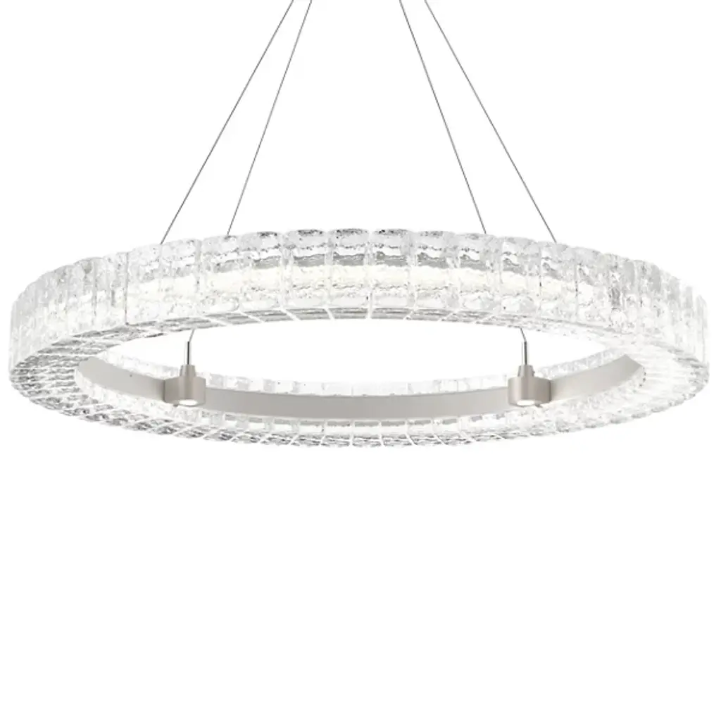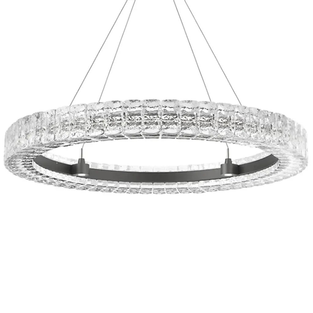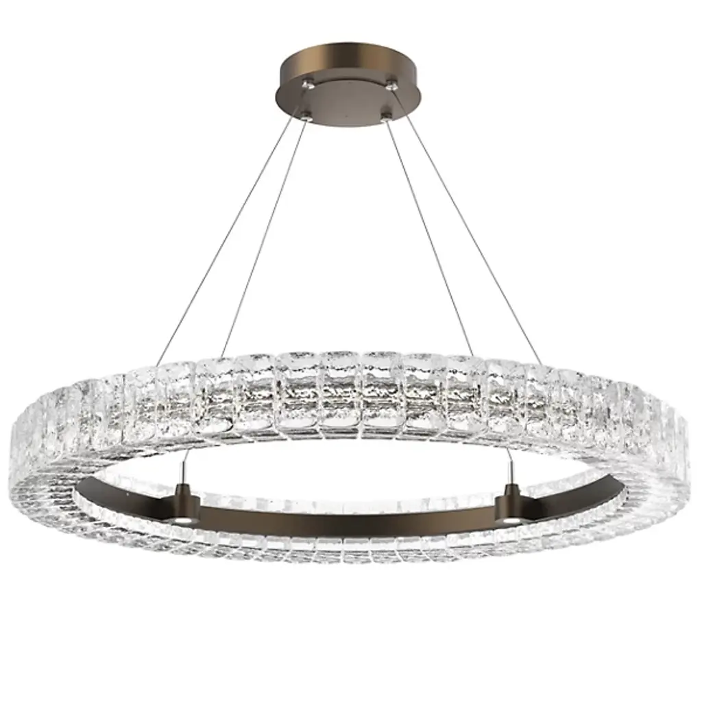 Hammerton Studio presents the Asscher LED Chandelier. Reminiscent of a classic diamond tennis bracelet, this 36" diameter ceiling fixture adds a touch of modern elegance to any space. 3,000K integrated LED light refracting through clear hand-cast glass creates beautiful ambient light, while cleverly concealed downlights provide additional task lighting.