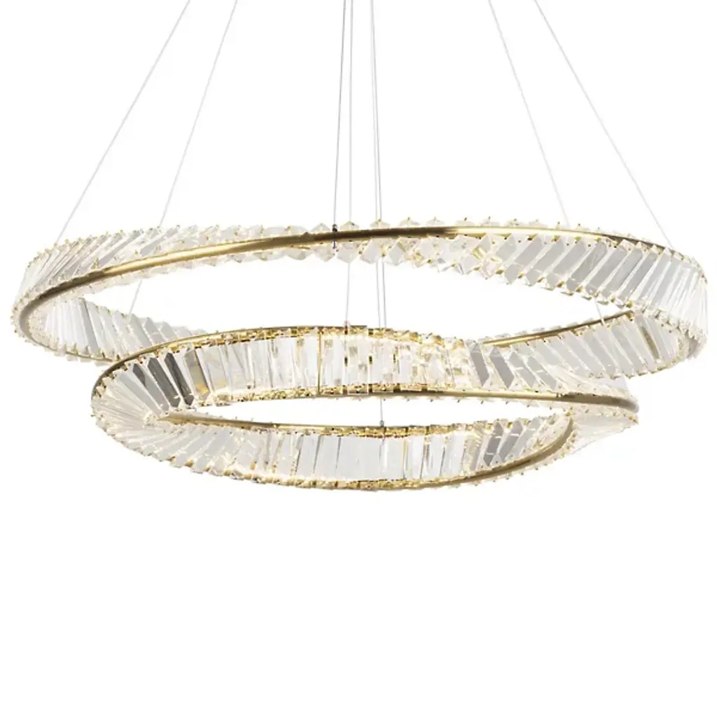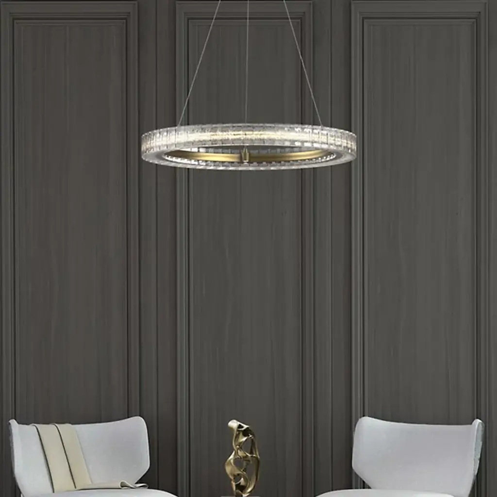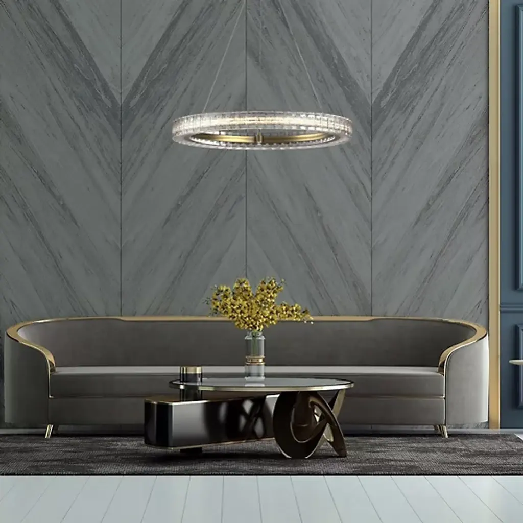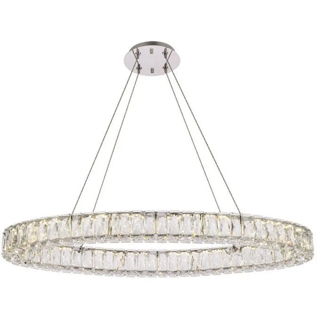 Hammerton Studio presents the Asscher LED Chandelier. Reminiscent of a classic diamond tennis bracelet, this 36" diameter ceiling fixture adds a touch of modern elegance to any space. 3,000K integrated LED light refracting through clear hand-cast glass creates beautiful ambient light, while cleverly concealed downlights provide additional task lighting.