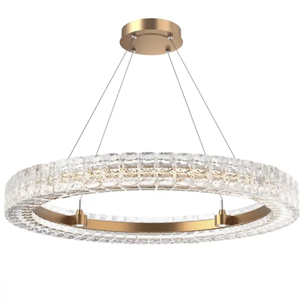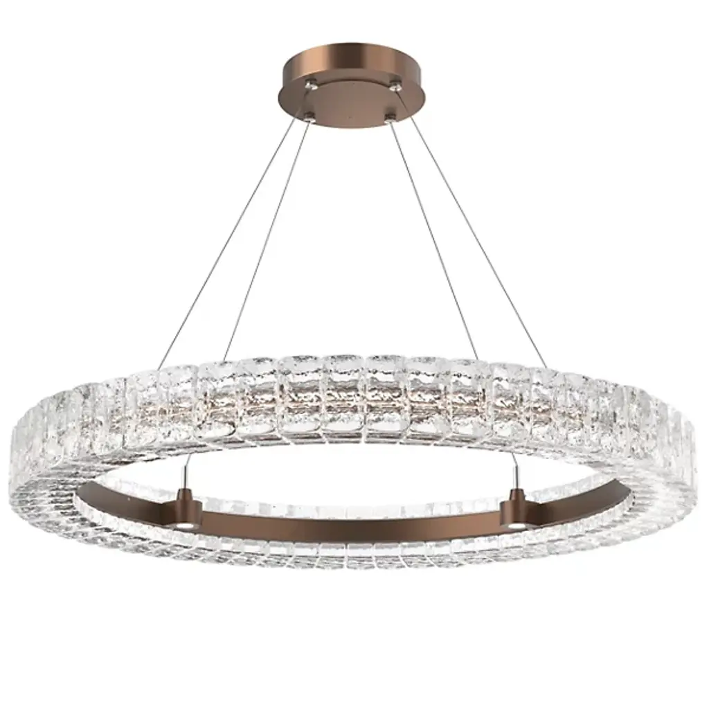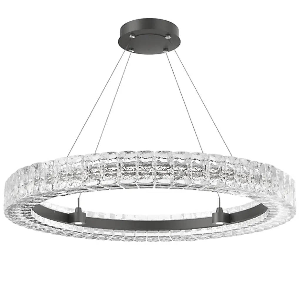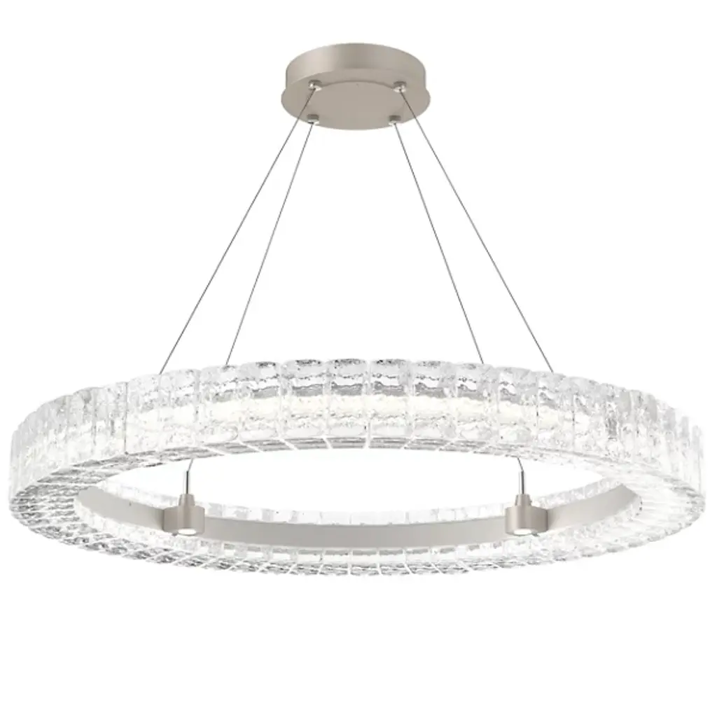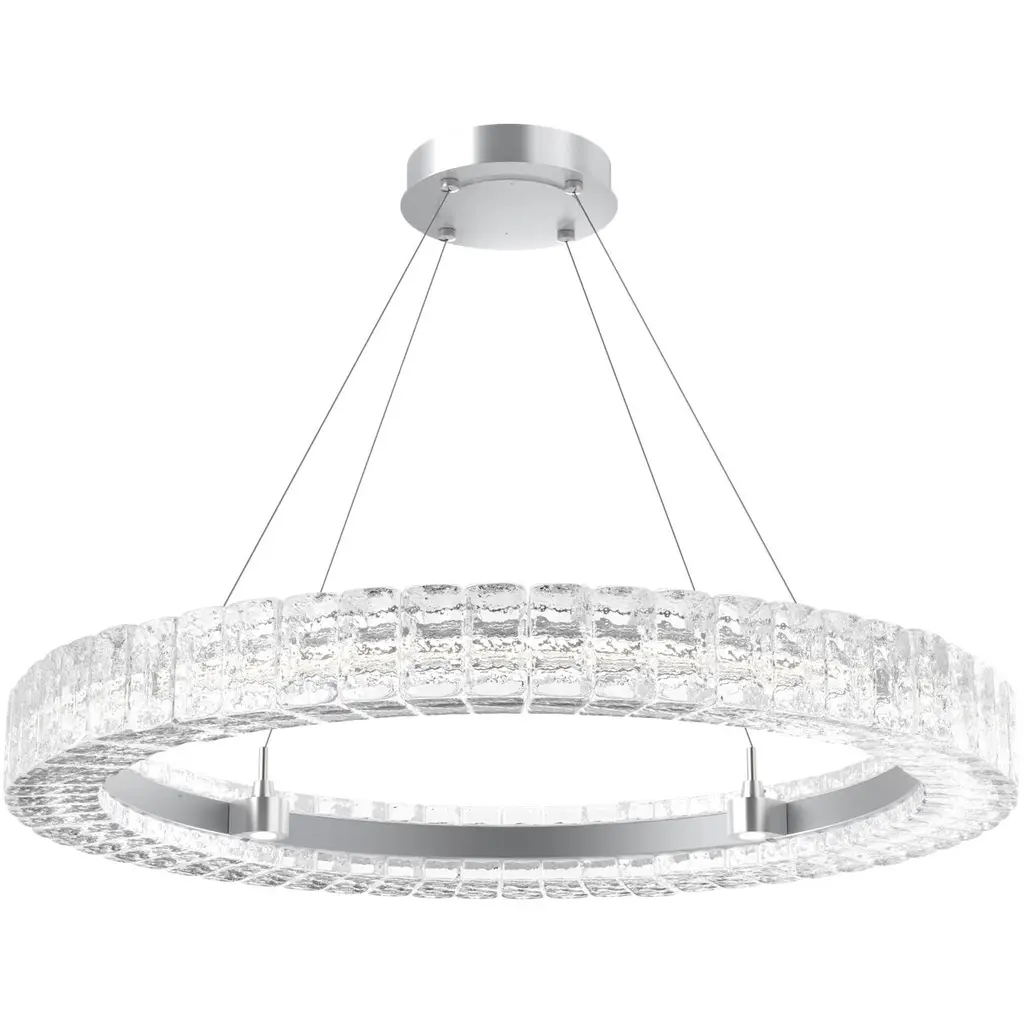 Hammerton Studio presents the Asscher LED Chandelier. Reminiscent of a classic diamond tennis bracelet, this 36" diameter ceiling fixture adds a touch of modern elegance to any space. 3,000K integrated LED light refracting through clear hand-cast glass creates beautiful ambient light, while cleverly concealed downlights provide additional task lighting.
