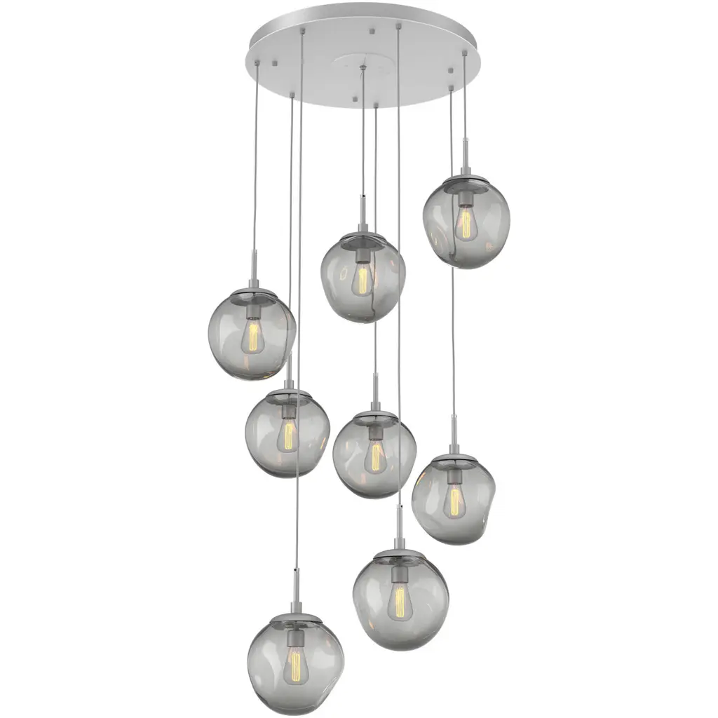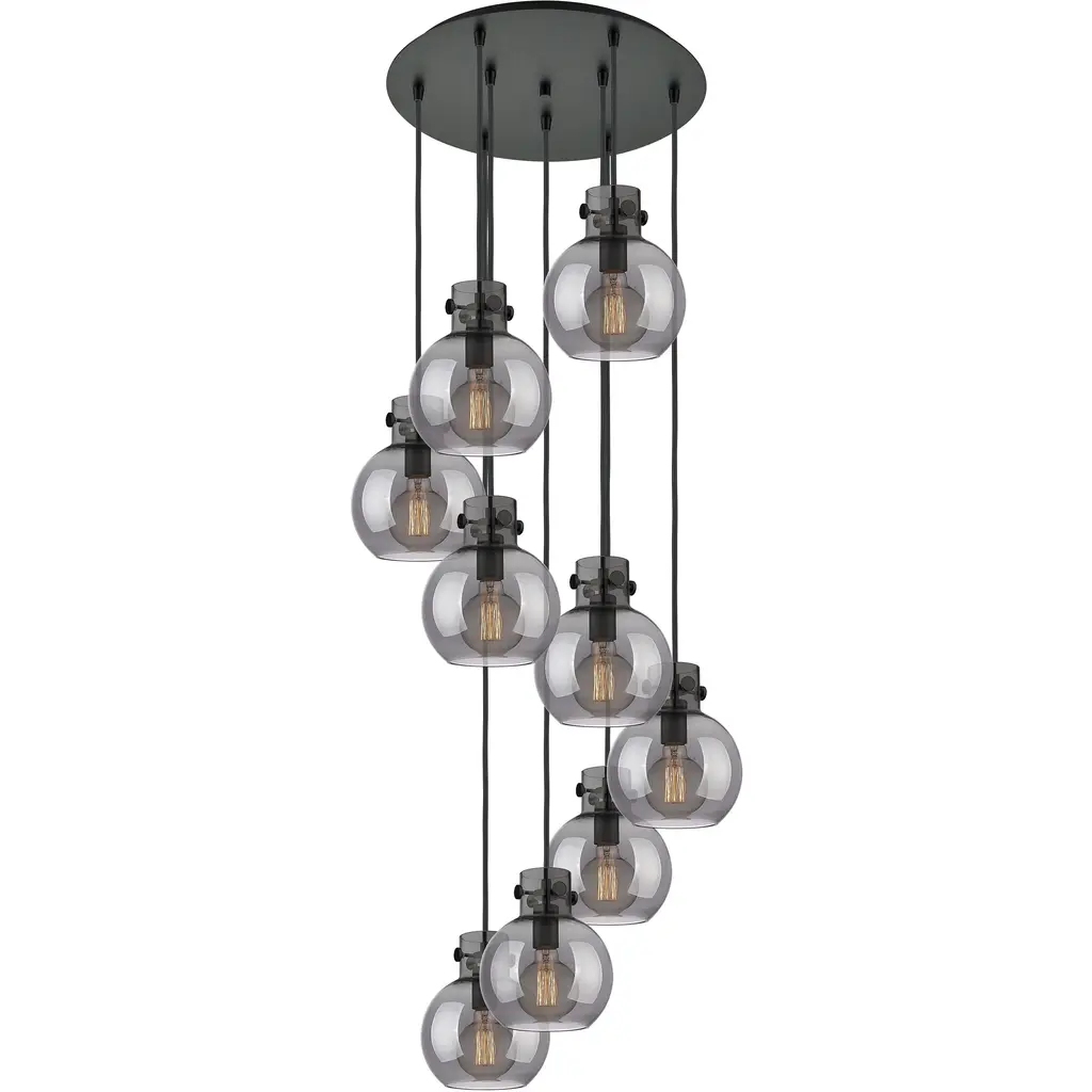 Aster Round Multi-Port-11PC-Incandescent-Graphite-Blown Glass - Smoke-Black Cloth Braided Cord-E26