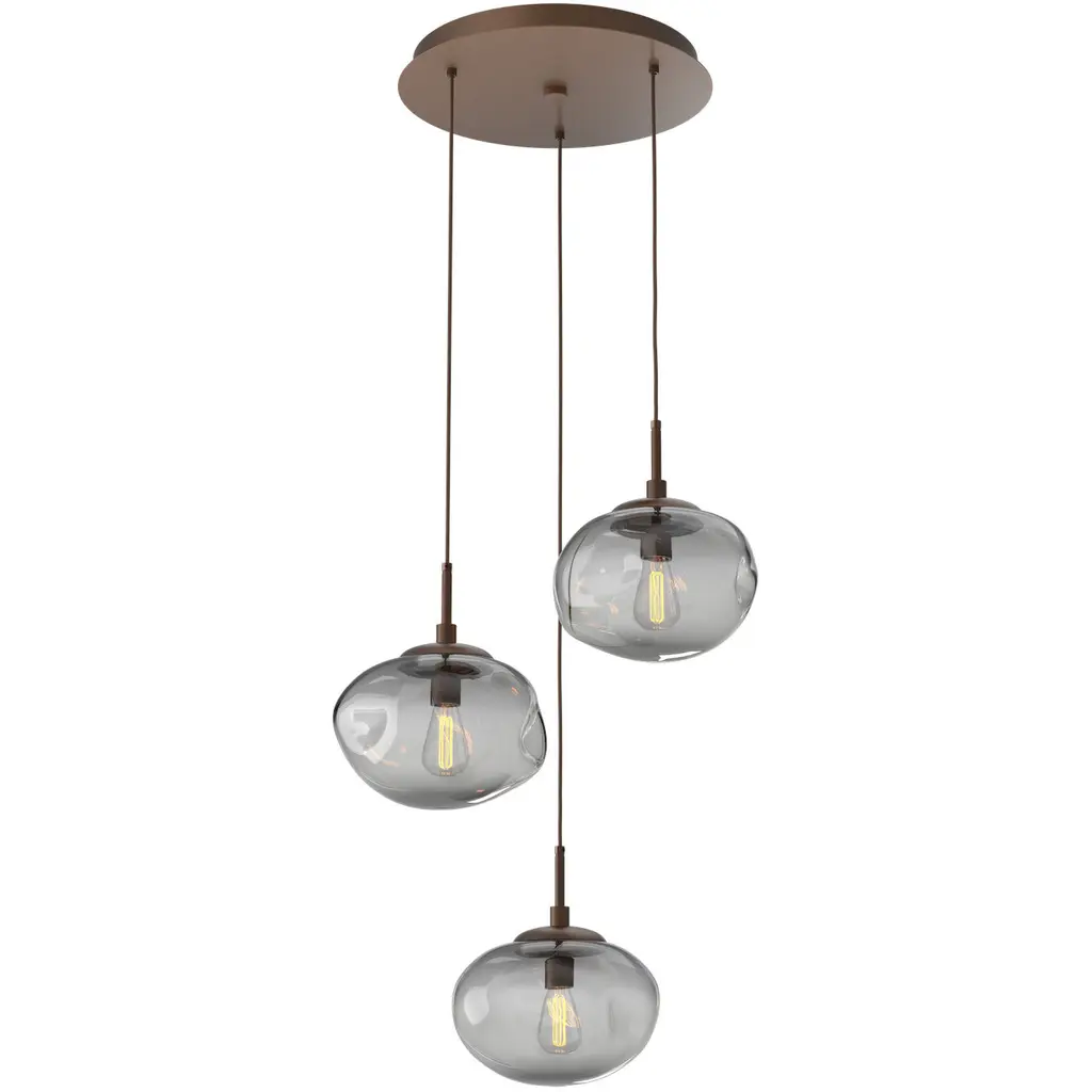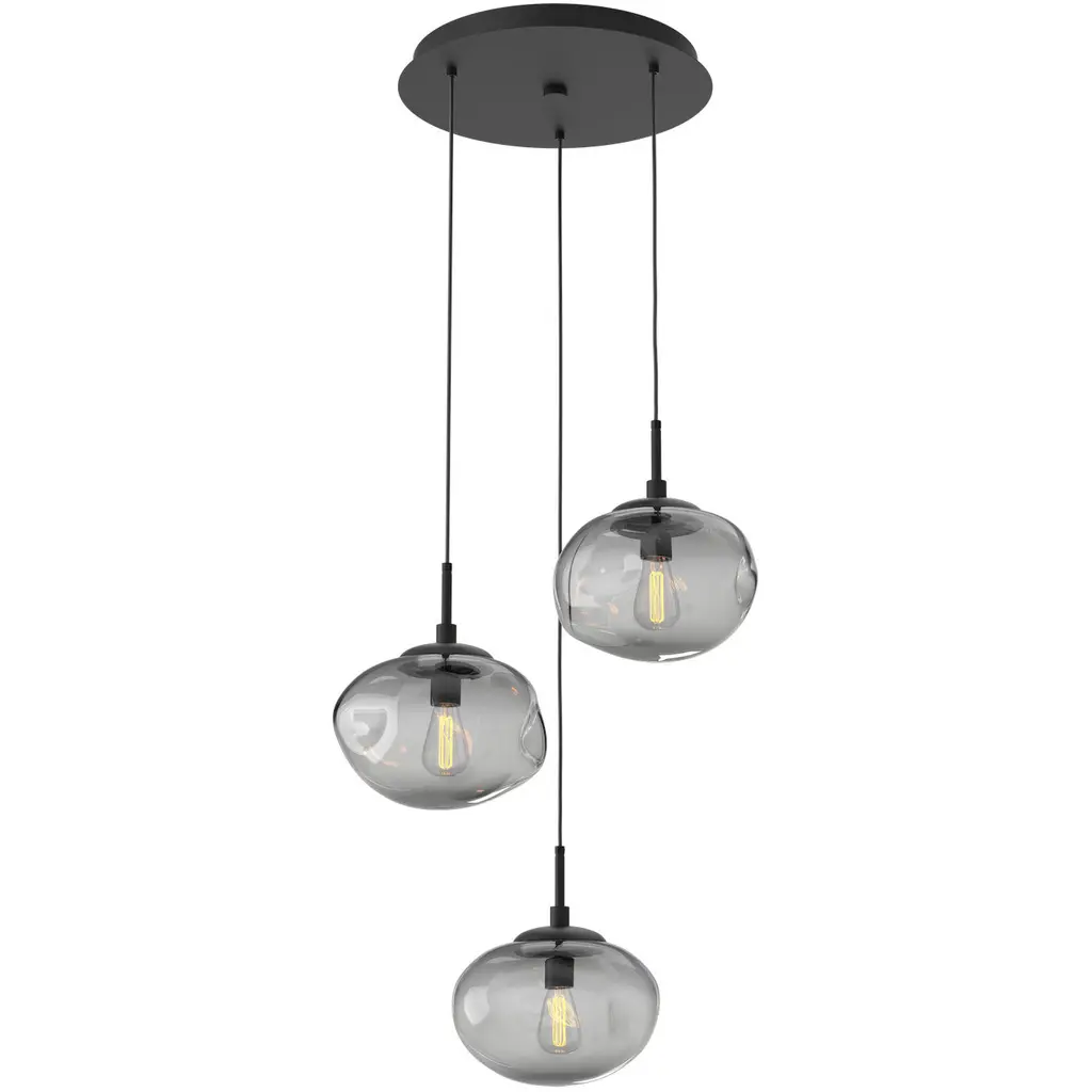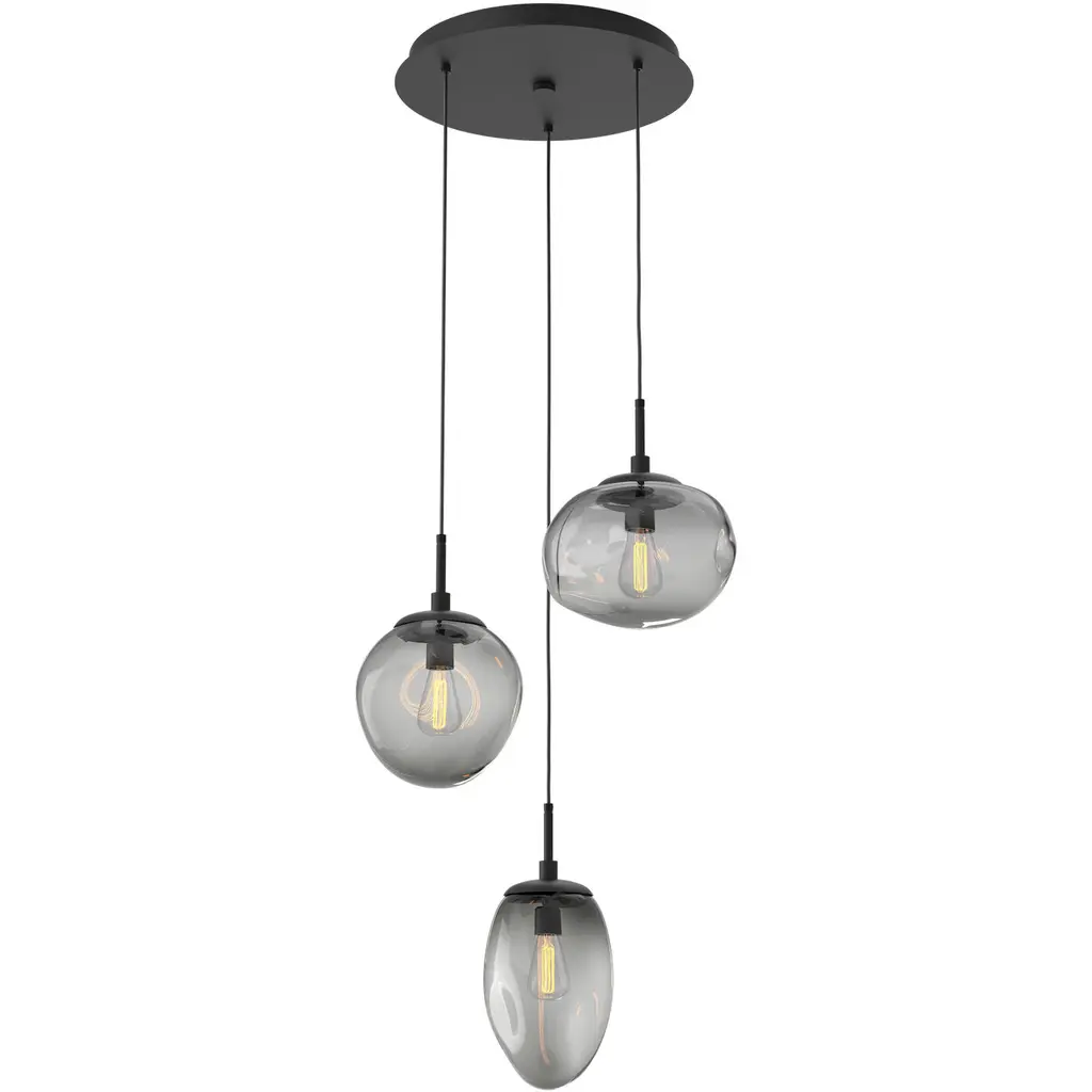 Aster Round Multi-Port-3PC-Incandescent-Graphite-Blown Glass - Smoke-Black Cloth Braided Cord-E26