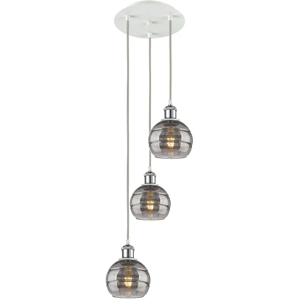 Aster Round Multi-Port-3PC-LED-Metallic Beige Silver-Zircon Inner - Smoke Outer-Silver Cloth Braided Cord-LED