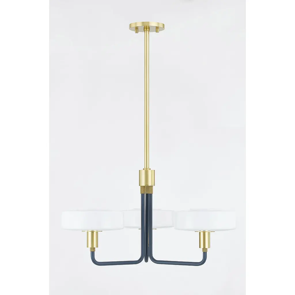 Aston 3 Light 24.25 Inch Aged Brass/slate Blue Chandelier Ceiling Light