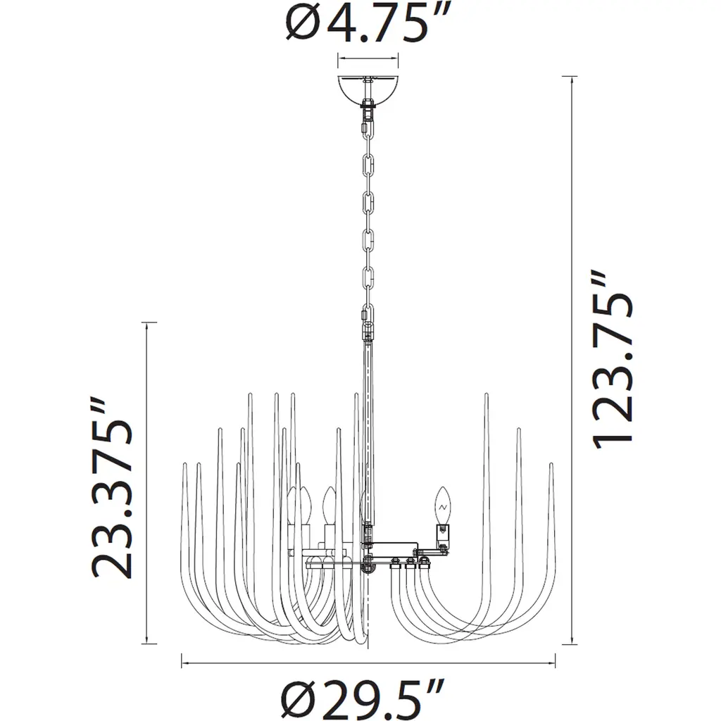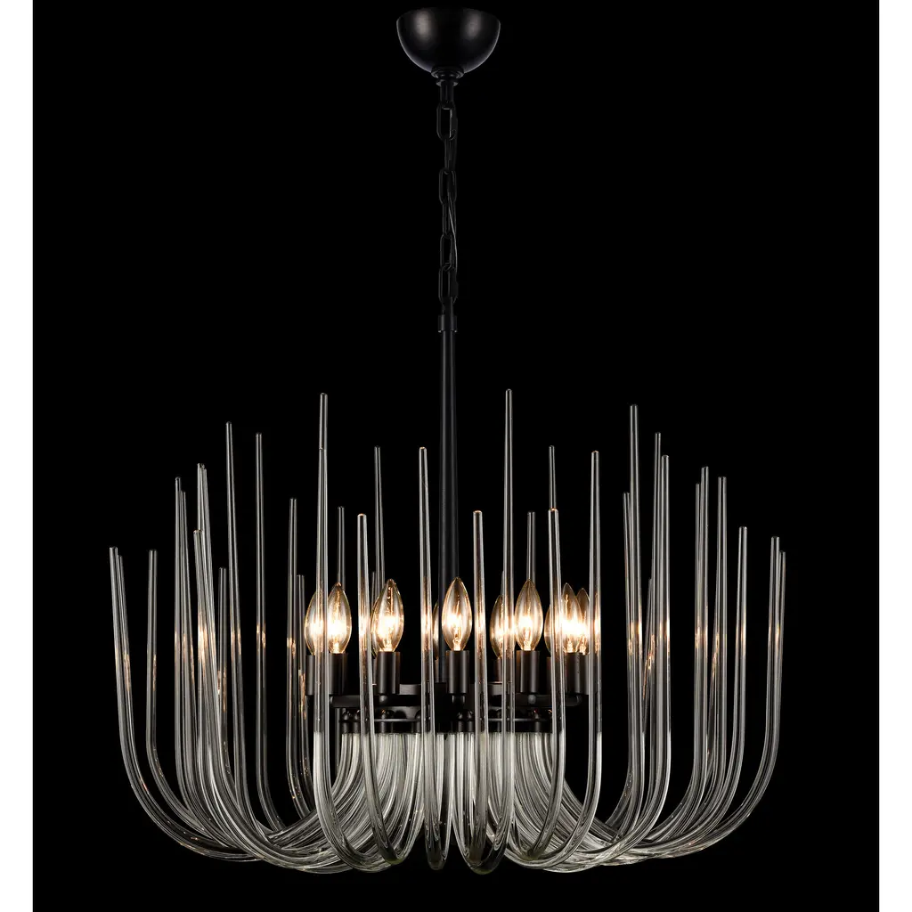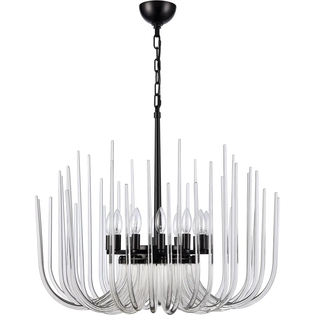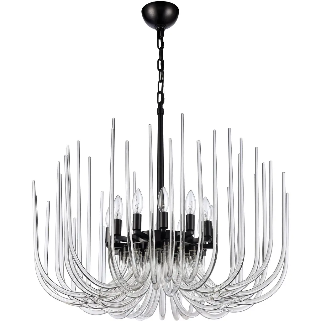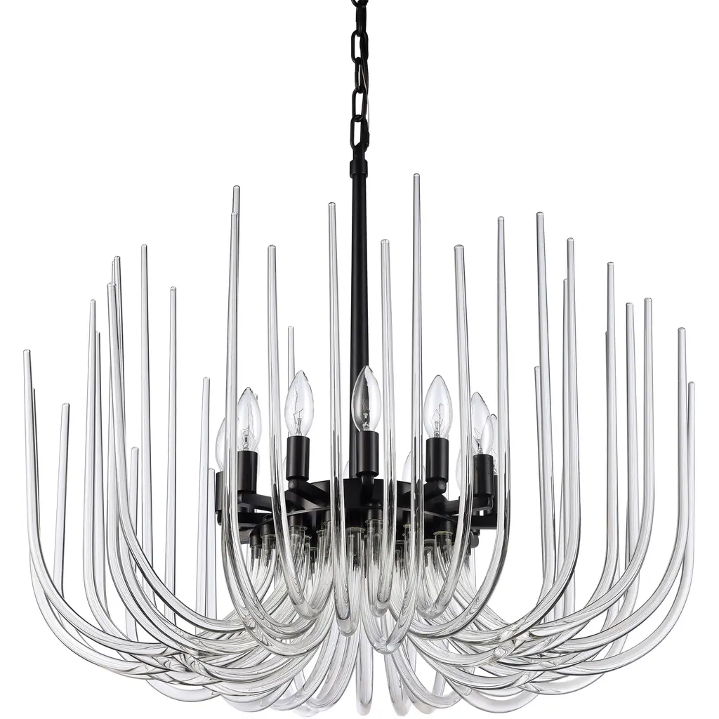 12-Light Solid Curved Clear Glass Satin Brushed Black Chandelier.