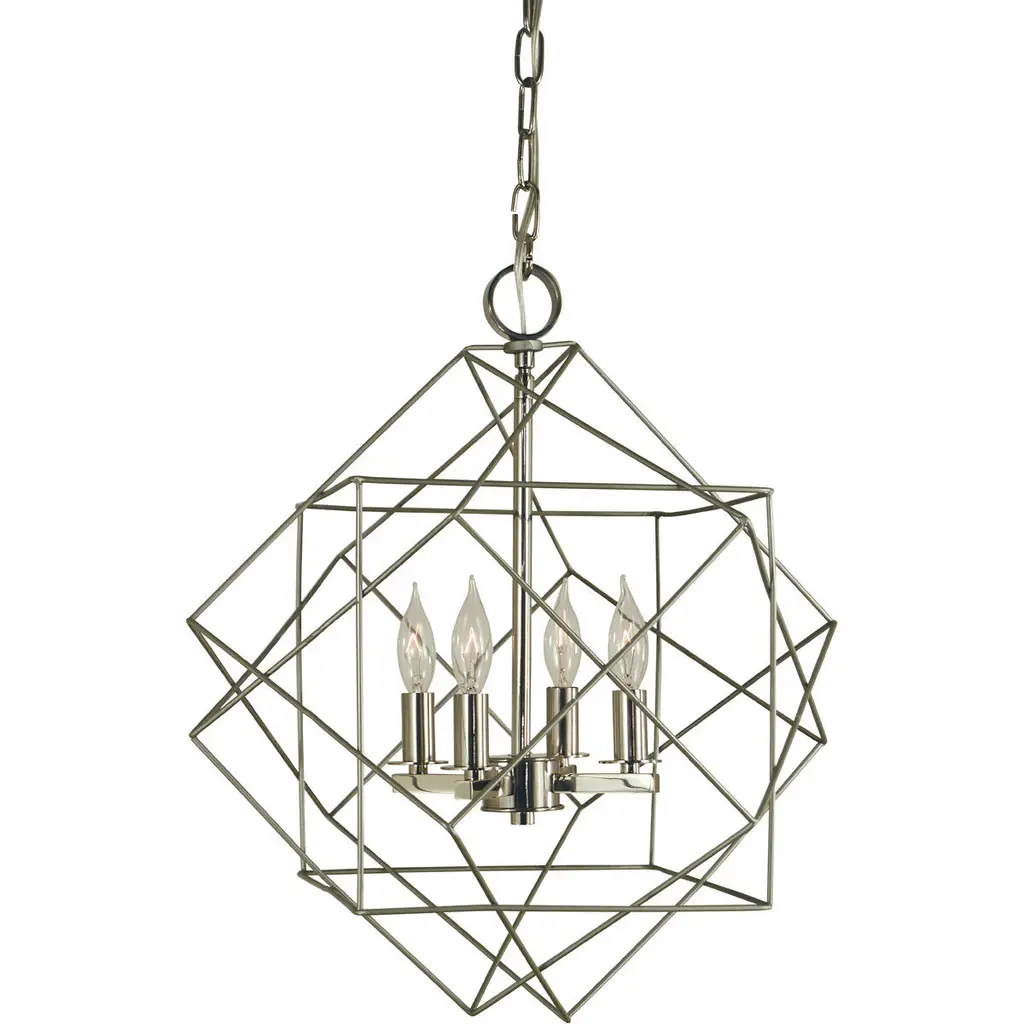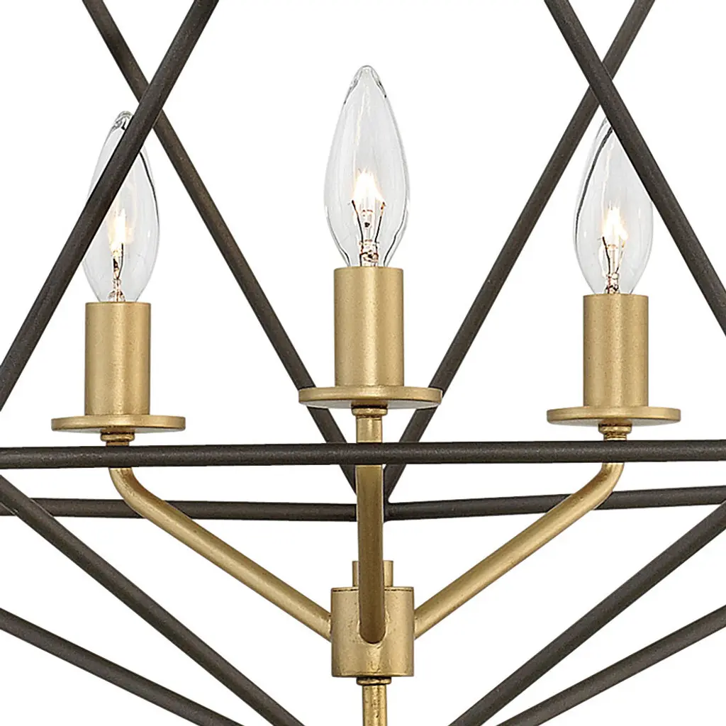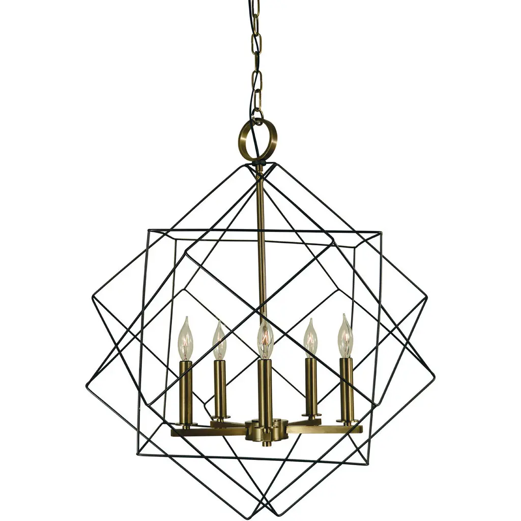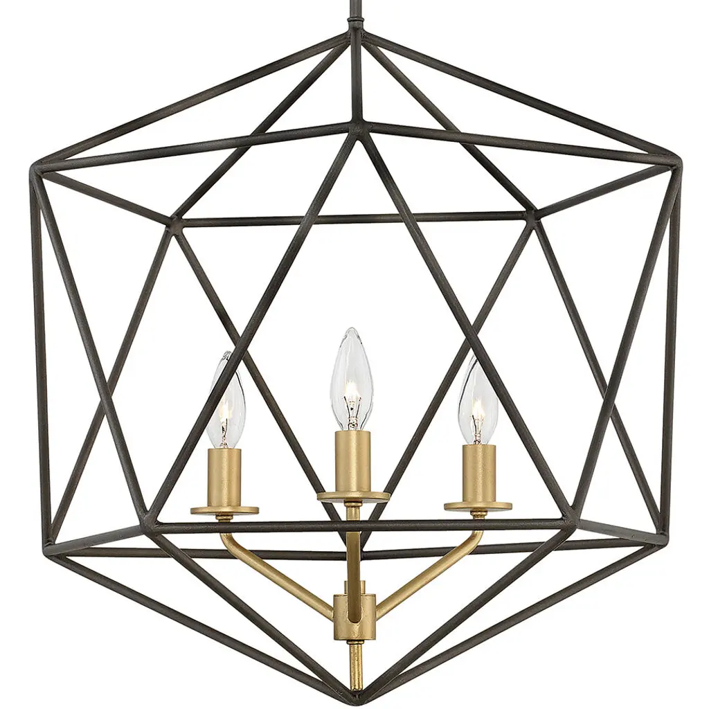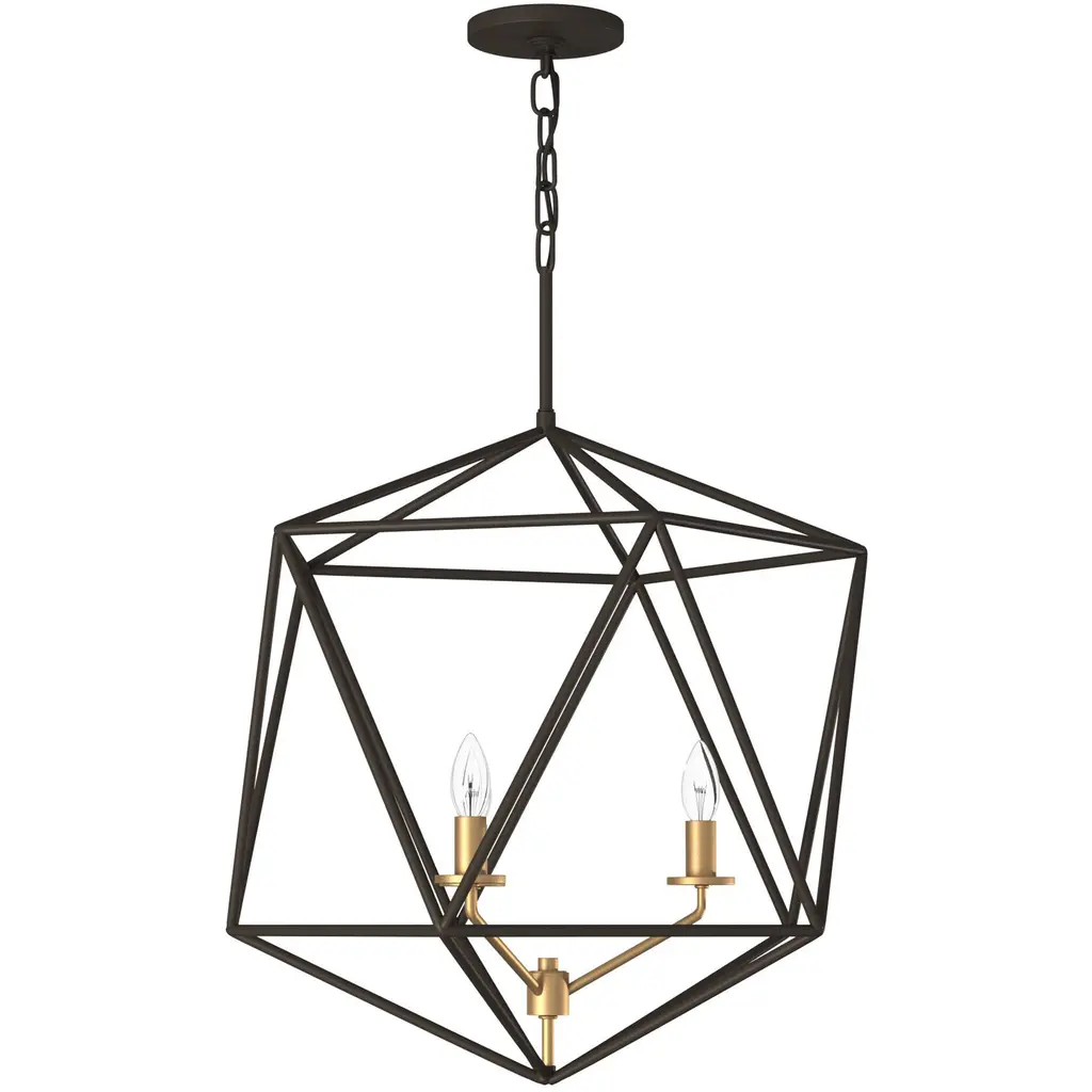 Sleek and chic, Astrid is designed as an airy geometric beauty balanced with robust welded construction. The inner light cluster, uniquely wired from the bottom, appears to float inside the outer cage. The two-tone finish further enhances the layering effect for added depth and dimension.