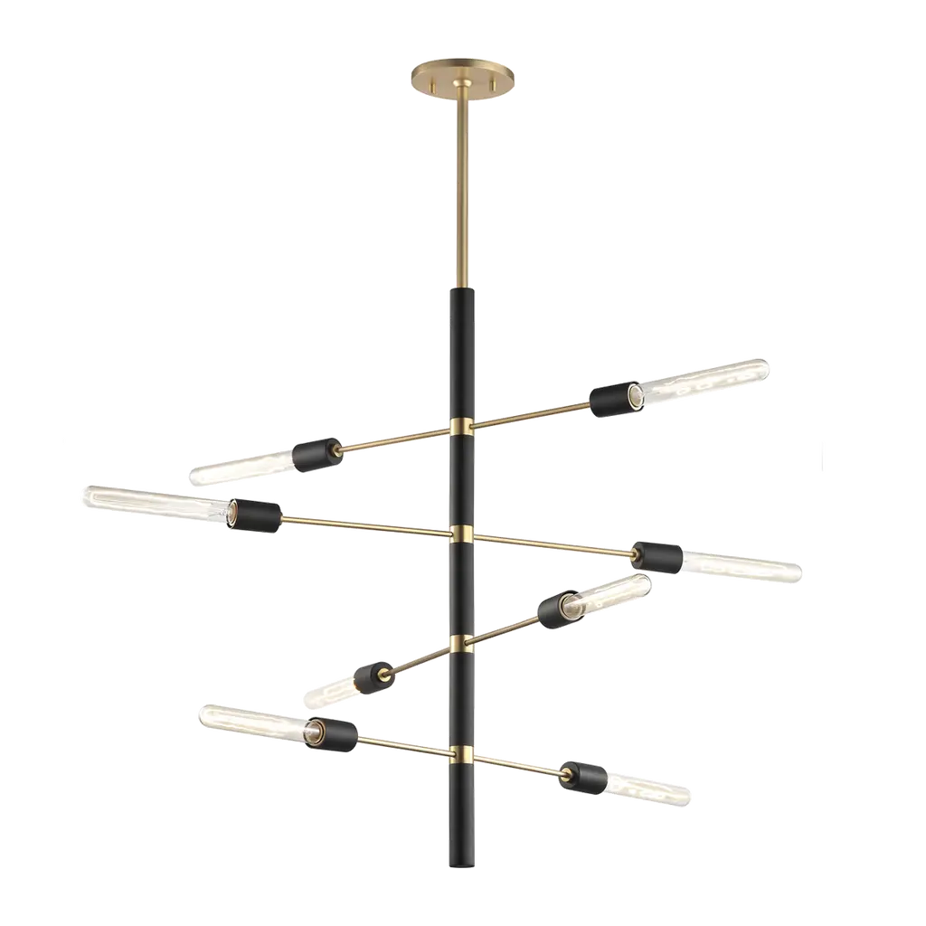 Dress up your dining room with this linear modern design that cascades effortlessly from the ceiling. Shown in a sleek blend of antique brass and matte black, Astrid lends industrial flair to any setting. Whether you’re spotlighting a cozy breakfast nook or expansive dining scene, Astrid is available in three sizes and two finishes to suit any setting.