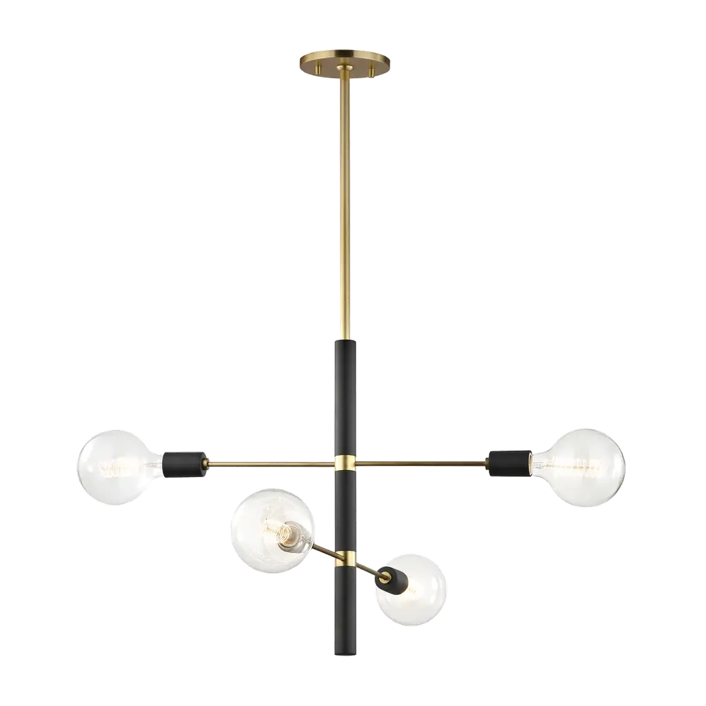 Dress up your dining room with this linear modern design that cascades effortlessly from the ceiling. Shown in a sleek blend of antique brass and matte black, Astrid lends industrial flair to any setting. Whether you’re spotlighting a cozy breakfast nook or expansive dining scene, Astrid is available in three sizes and two finishes to suit any setting.