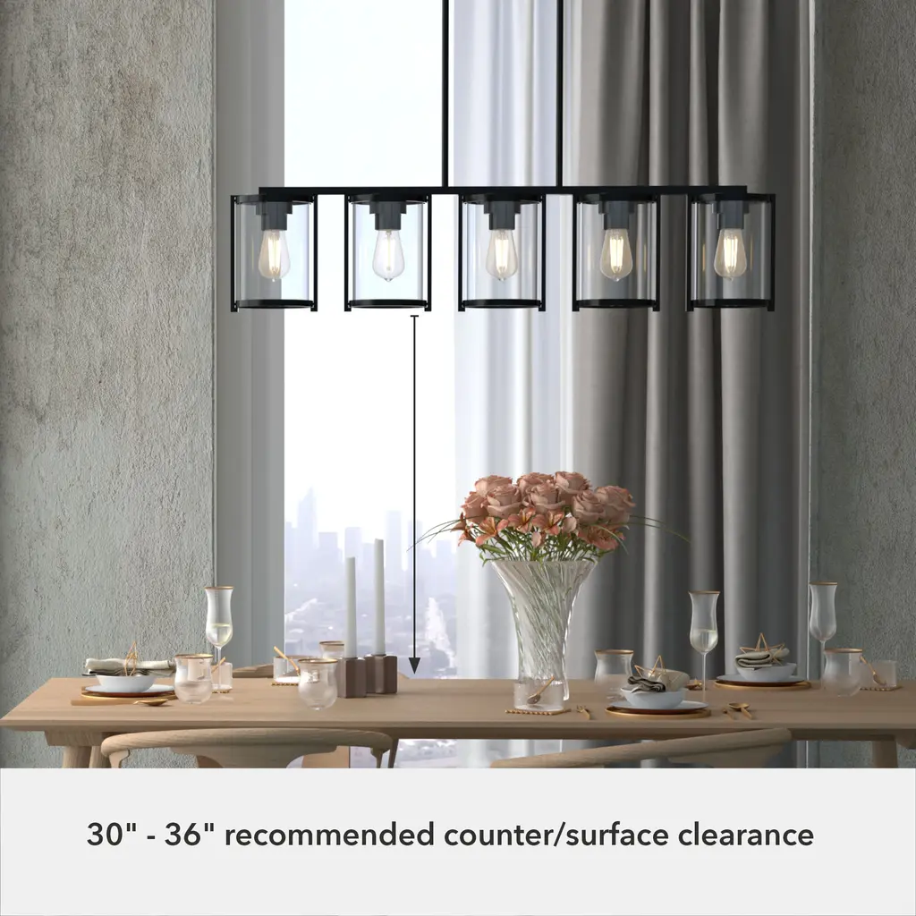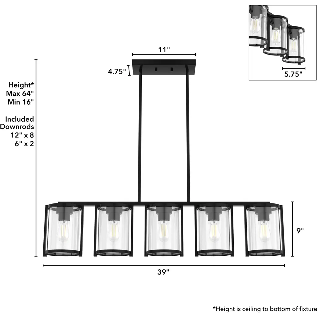 Astwood 5 Light 39 Inch Matte Black Linear Chandelier Ceiling Light, Large