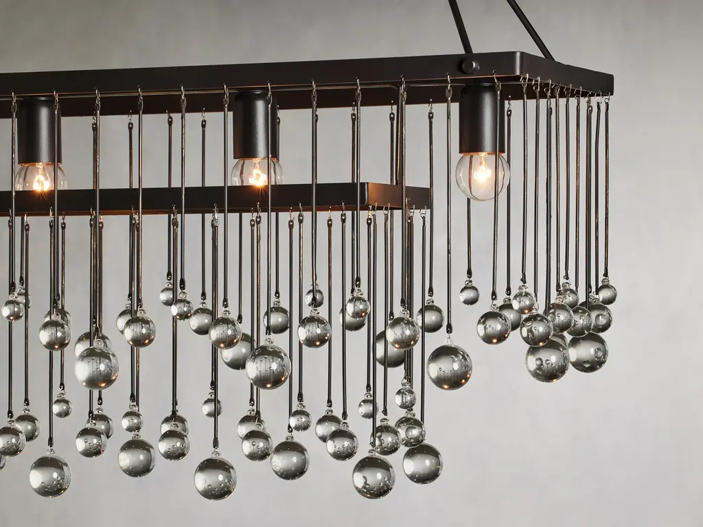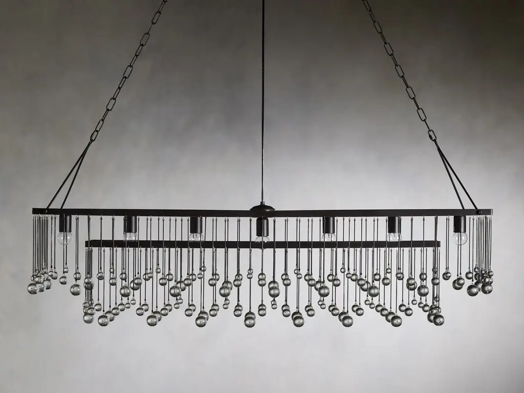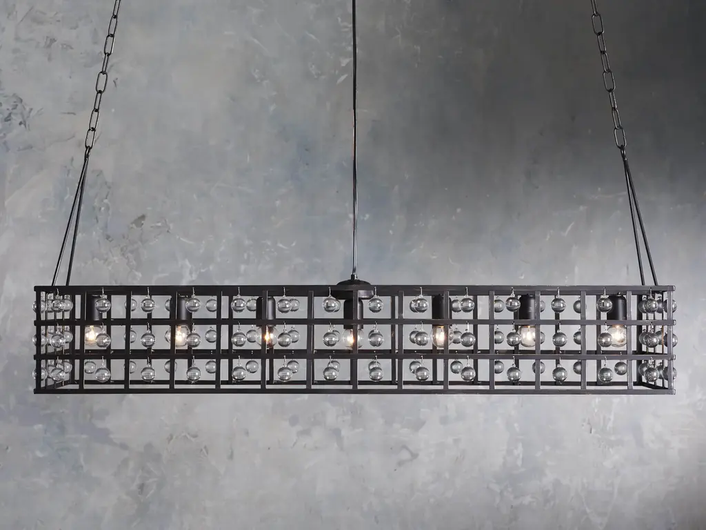 Equally at home in an ancient French castle or a downtown New Orleans loft, our Aubrey Chandelier creates dramatic ambiance in any setting. Crystal drops hanging in varying lengths from an iron cage create the illusion of movement as they catch the light, refracting brilliant beams around your room.