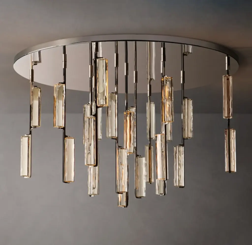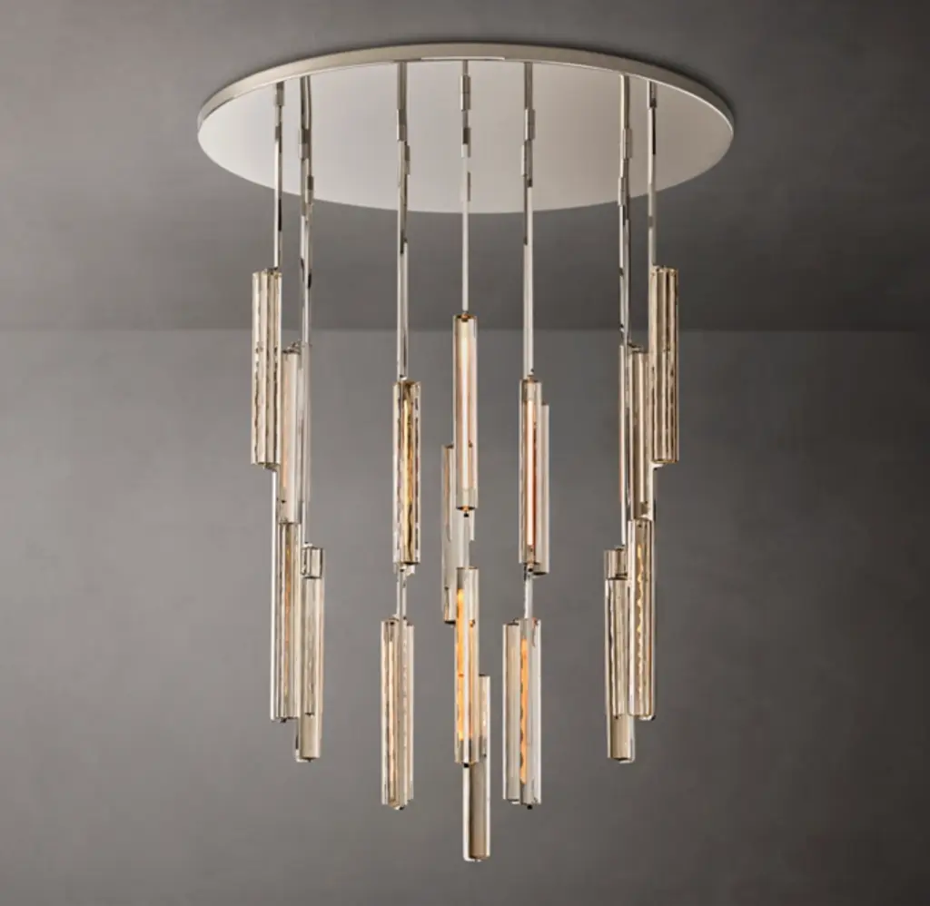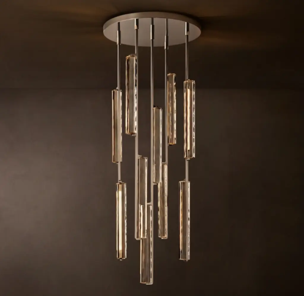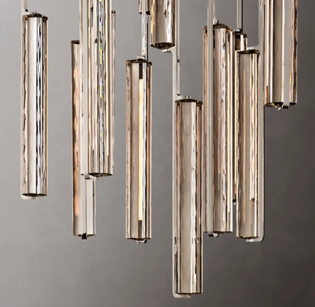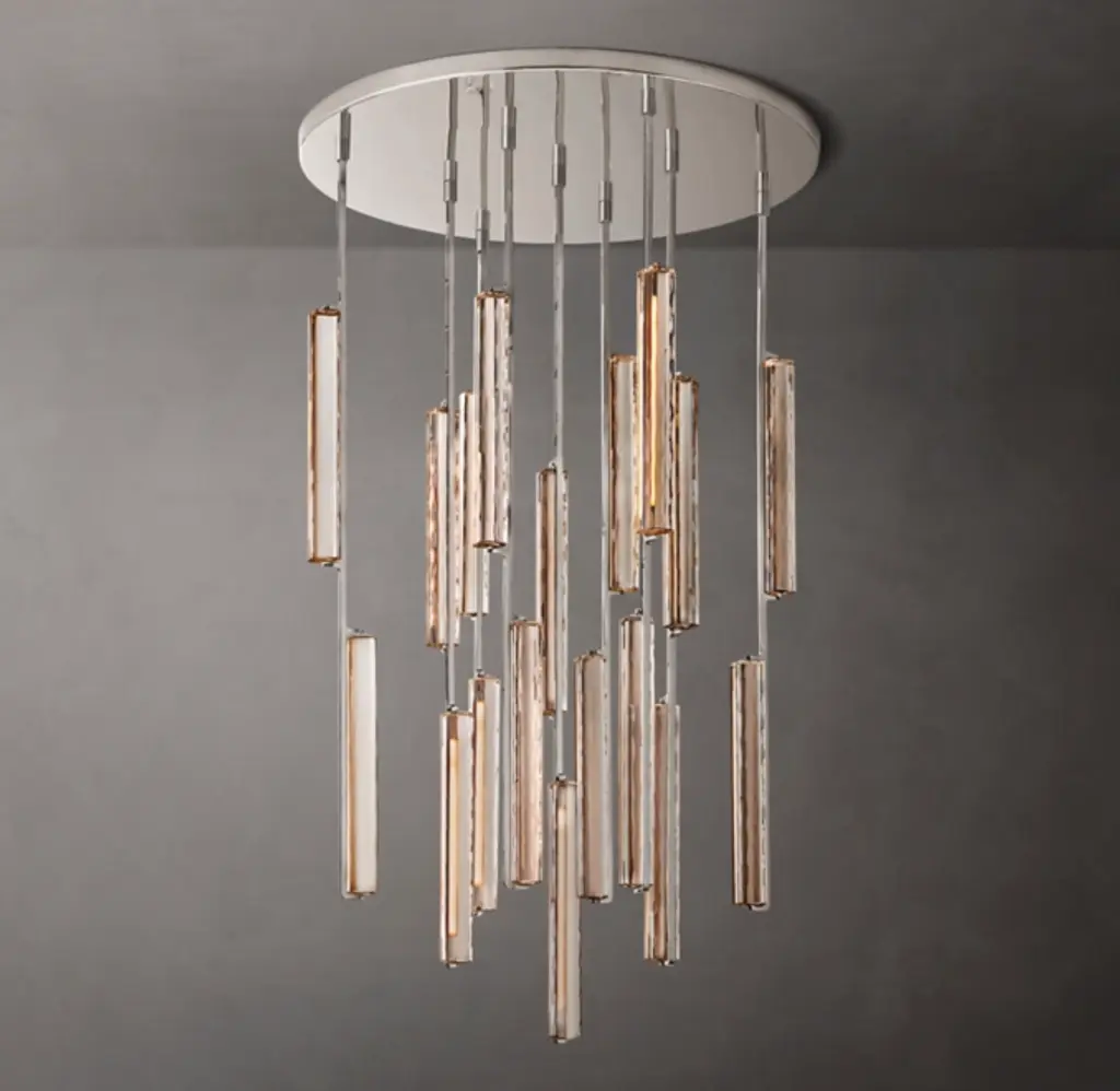 Capturing the spirit of 1960s Italian minimalism, Audubon appears to cascade from above with prisms of hand-polished K9 crystal on vertical brass drops. At once striking and restrained, the collection by Joseph Jeup evokes the warmth of candlelight with elongated LEDs that shed beautiful light through the undulating texture of the glass. Choose from two drop lengths: Classic, designed for 8'-10' ceilings; or Grand, designed for ceilings 10' and above. ALSO AVAILABLE IN ALABASTER SHOP THE ENTIRE COLLECTION