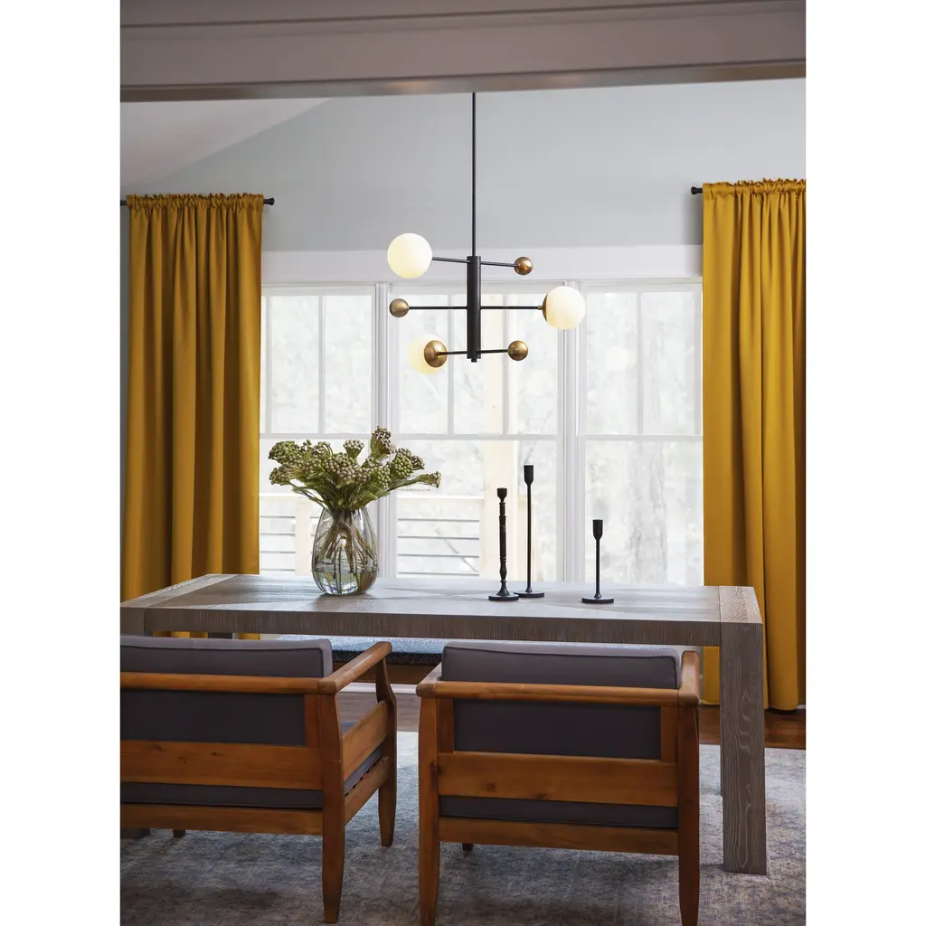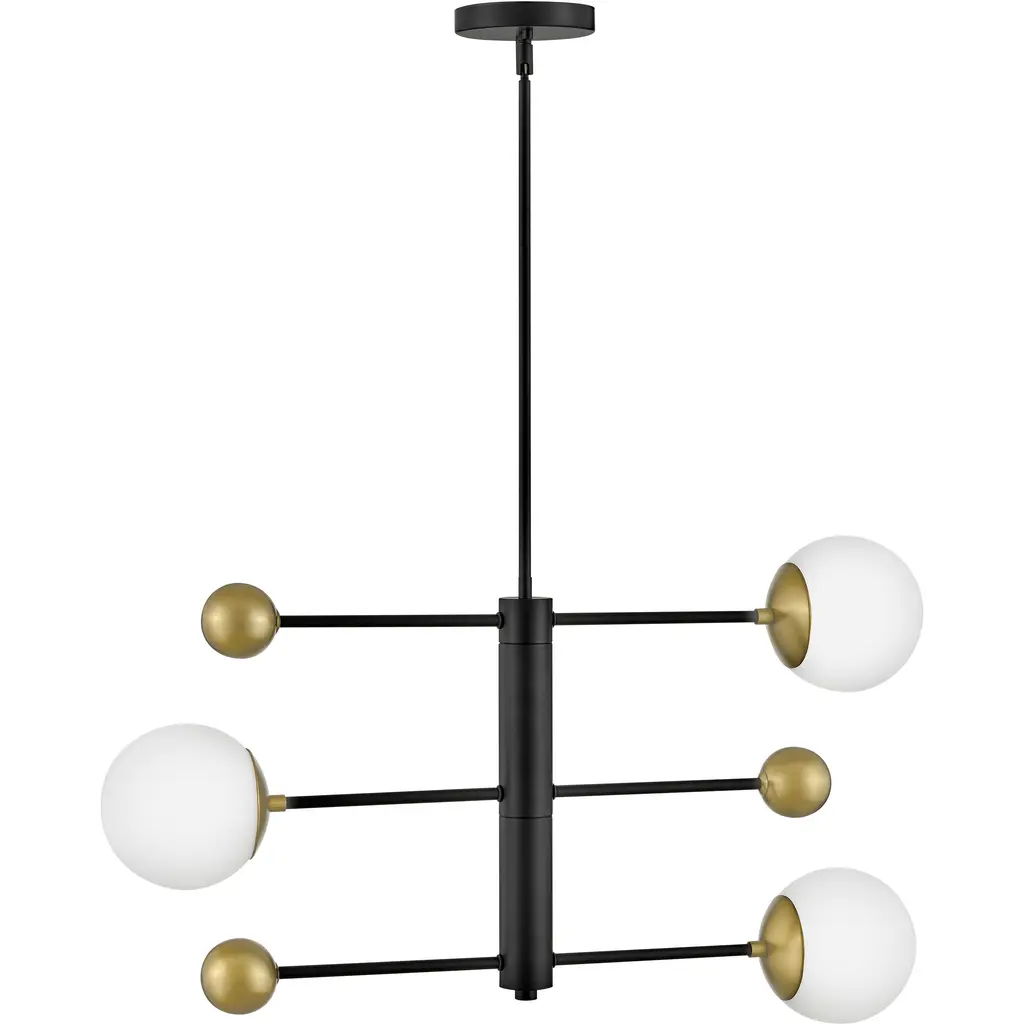 Thick and thin, big and small, curved and straight – Auggie is the definition of how opposites attract. The stacked linear arms feature an etched opal globe on one side and a weighted Lacquered Brass sphere on the other. With an articulating design, you can customize the look to fit your style, even if that changes day to day. Over a dining table, in a foyer, or in the living room, good vibes revolve around Auggie.