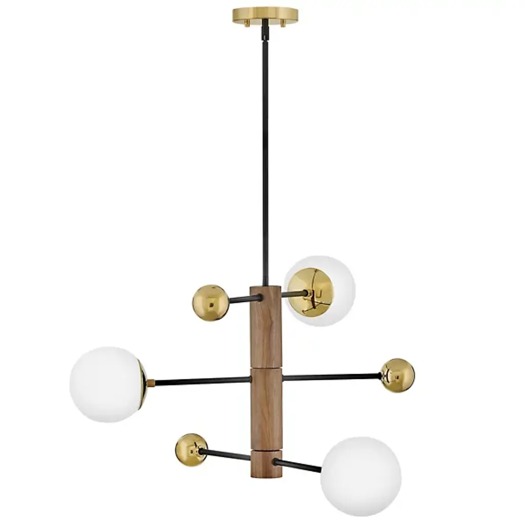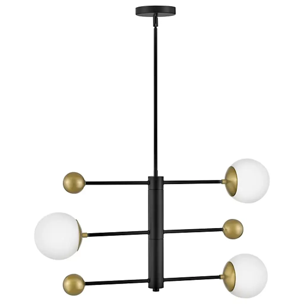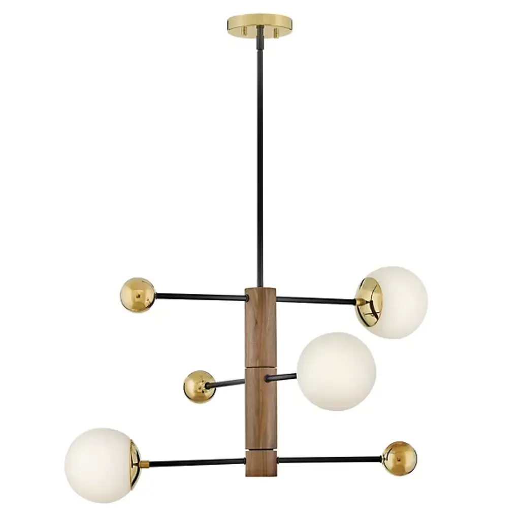 The Auggie Medium Adjustable Multi Tier Chandelier from Lark combines mid-century modern and contemporary styles. Crafted with steel, the chandelier's articulating arms showcase streamlined elegance, embellished with globes that emulate the chic silhouette of the etched opal shades. This luminary brings a touch of refined glamour and allows for customizable arrangements. Illuminate your space with Auggie and enjoy dimmable capabilities using a separately sold ELV dimmer, letting you create an inviting glow.