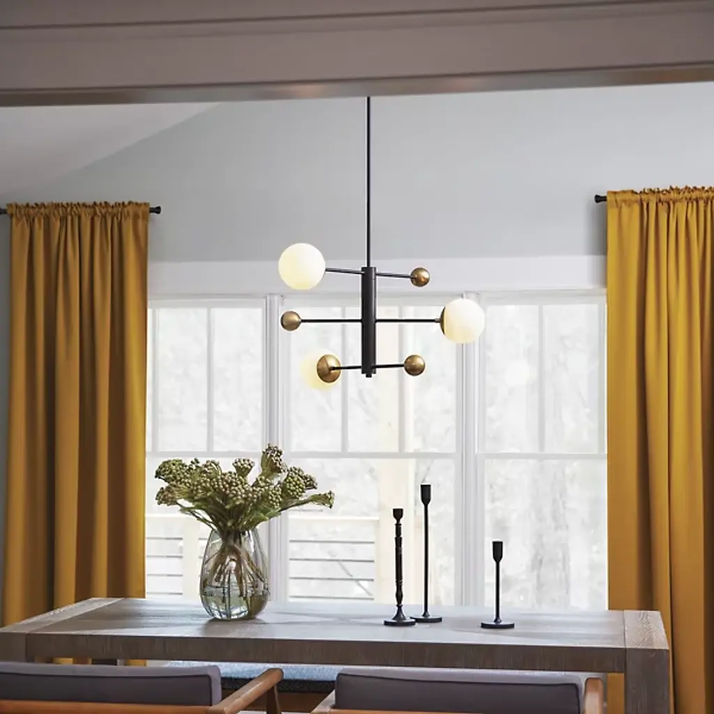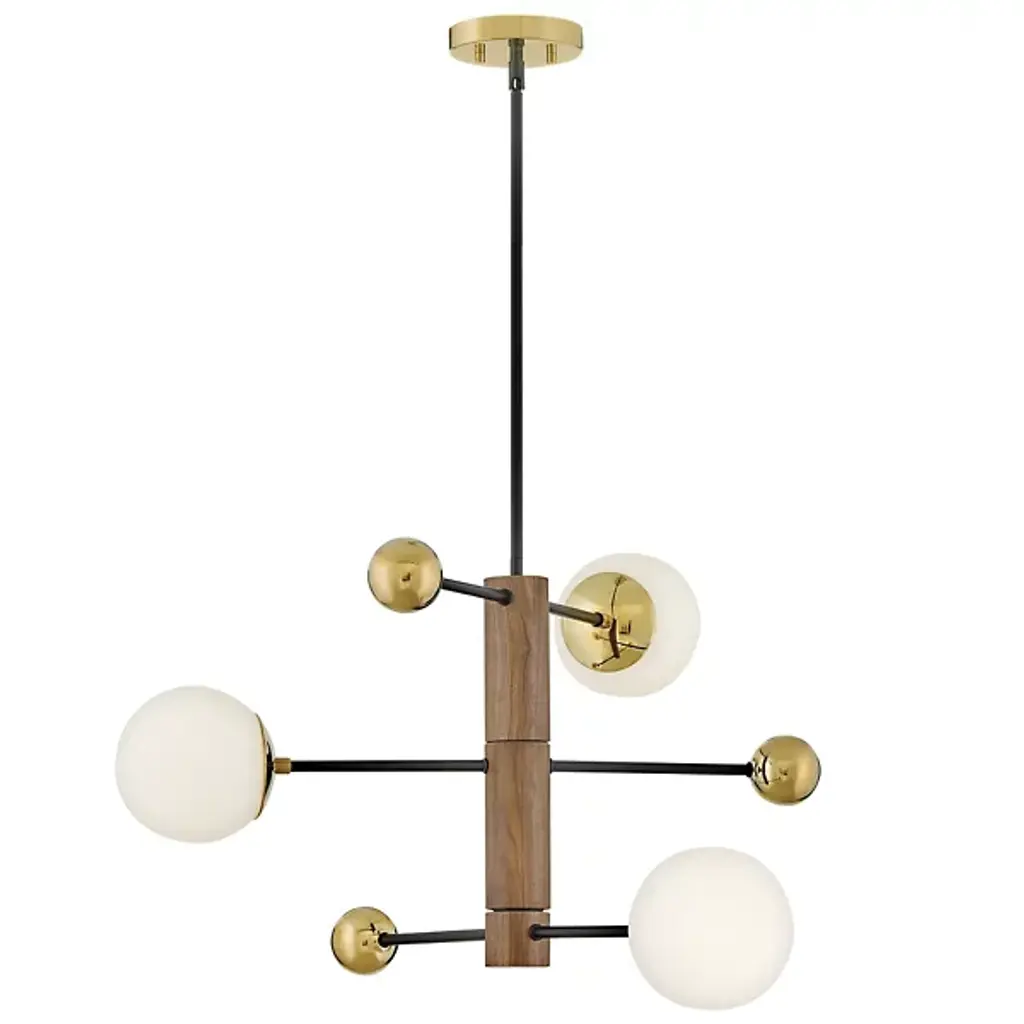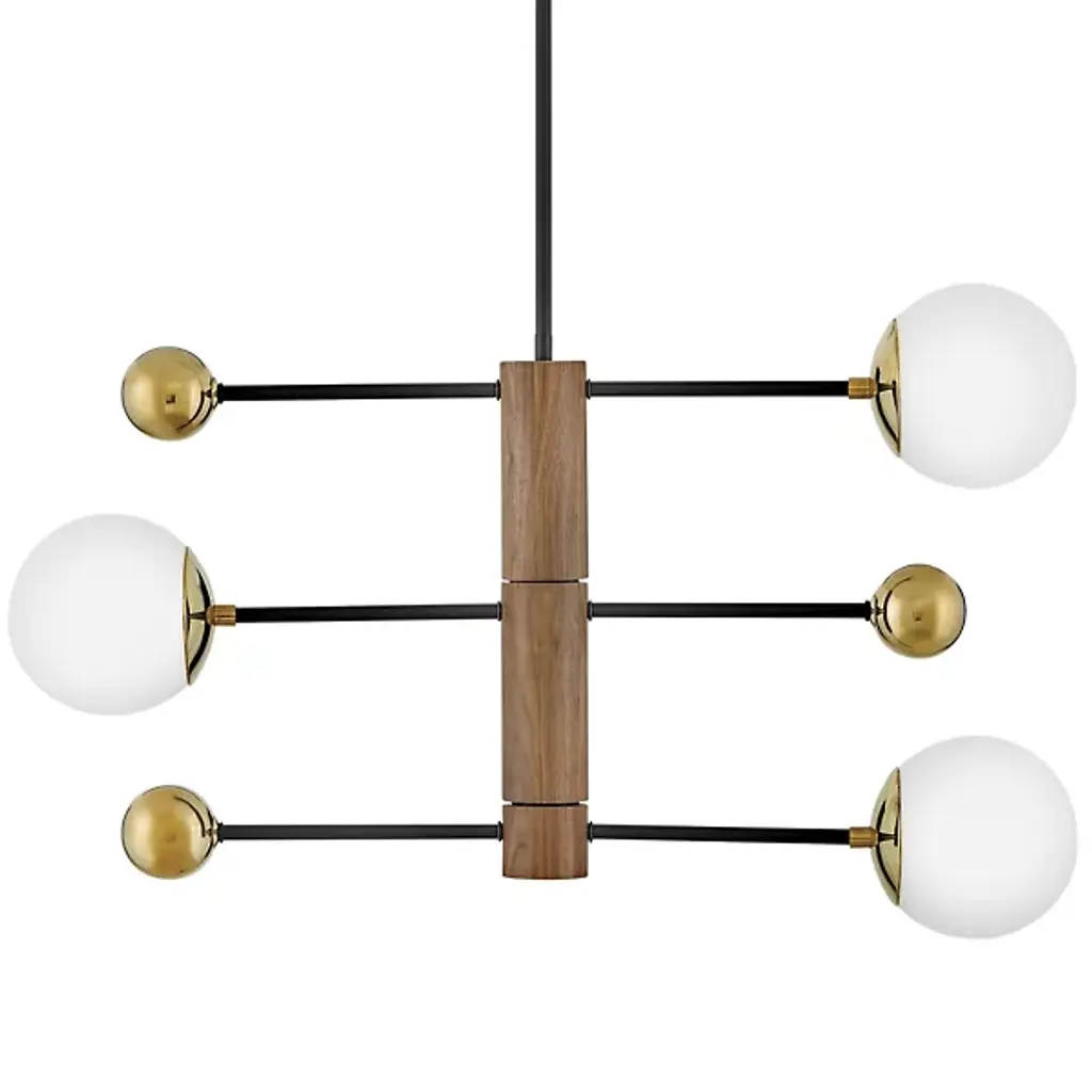 The Auggie Medium Adjustable Multi Tier Chandelier from Lark combines mid-century modern and contemporary styles. Crafted with steel, the chandelier's articulating arms showcase streamlined elegance, embellished with globes that emulate the chic silhouette of the etched opal shades. This luminary brings a touch of refined glamour and allows for customizable arrangements. Illuminate your space with Auggie and enjoy dimmable capabilities using a separately sold ELV dimmer, letting you create an inviting glow.
