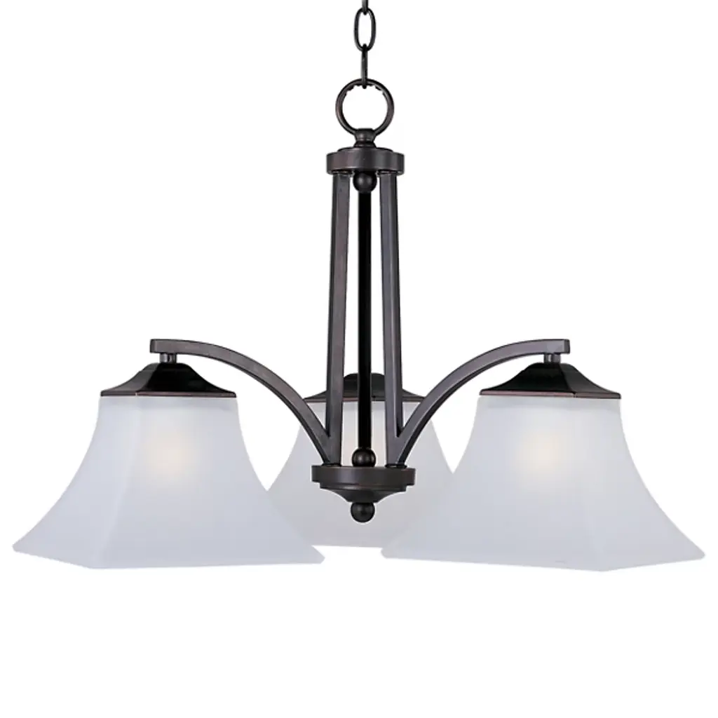 The Maxim Lighting Aurora 3 Light Chandelier creates a refreshing sense of well-being with its tailored design and cheerful downlighting. The Aurora 3 Light Chandelier features tapered square glass shades and a Satin Nickel finish.