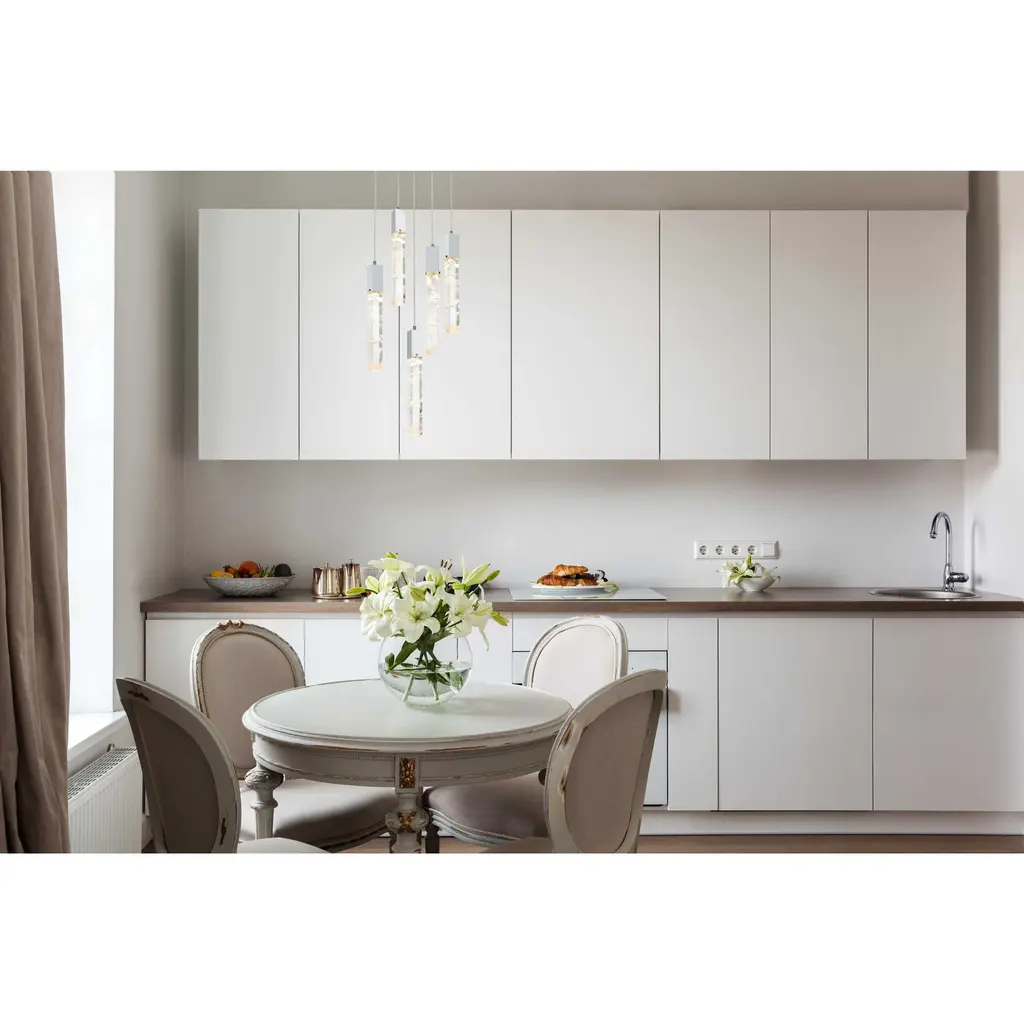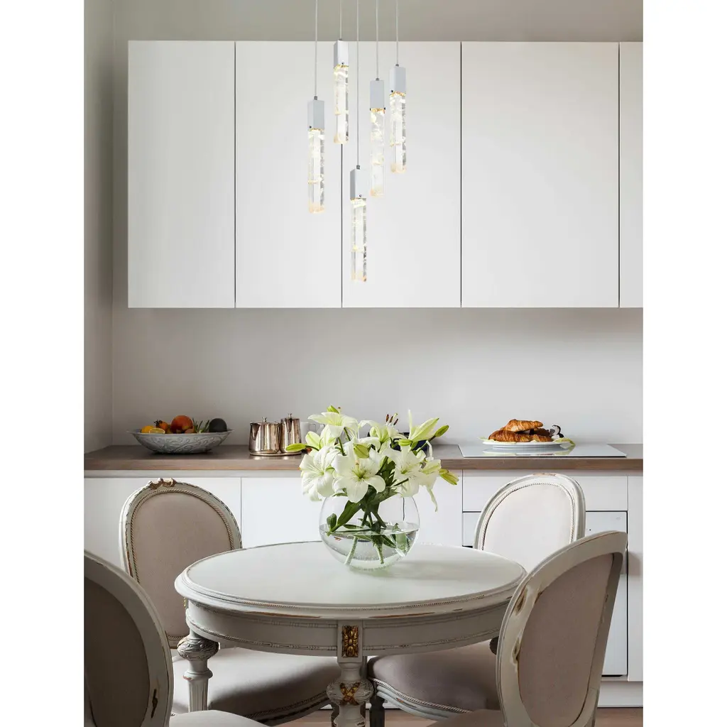 Immerse yourself in the captivating allure of our natural crystal pendant, a stunning piece that embodies the true artistry of nature. Each crystal tells a unique story, with ethereal white clouds and mysterious black specks forming a mesmerizing dance of elements within its clear surface. These wispy inclusions create a serene, dreamlike landscape that evokes both wonder and tranquility. Meticulously crafted over millennia, no two crystals are alike, making each pendant a one-of-a-kind masterpiece. Whether enhancing a modern minimalist space or adding elegance to a classic interior, this versatile lighting piece complements any style with its natural beauty. Suspended by an adjustable 144-inch cord and illuminating with a warm 3000K light at 480 lumens, it brings both sophistication and a calming ambiance to any room.