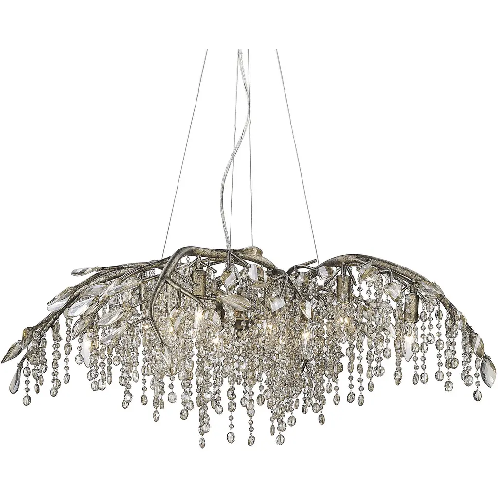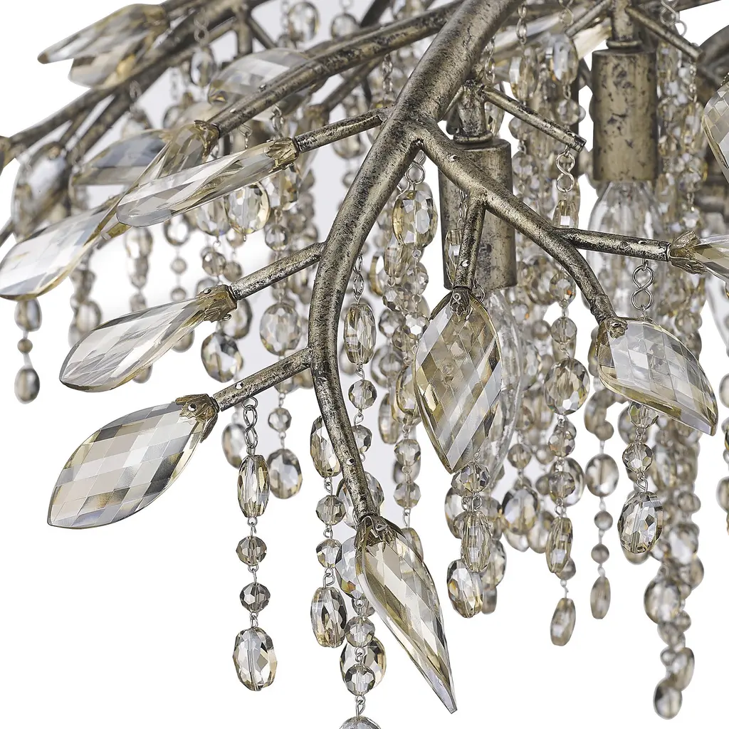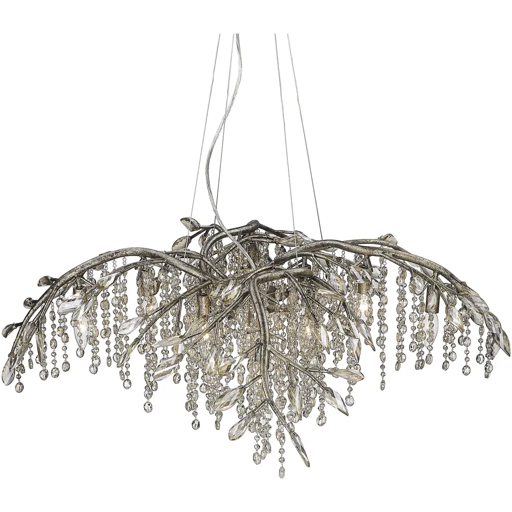 Bring gothic romance into your home with the Golden Lighting Autumn Twilight 12-light Chandelier. This captivating piece transforms organic forms into a breathtaking display with delicate crystals cascading like droplets from hand-forged metal branches. With no shade, the chandelier allows light to dance freely, enhancing its beauty in any setting. The mystic gold finish features a unique, weathered appearance that tells a story, adding warmth and charm. Ideal for dining rooms, foyers, or elevating bedrooms, this chandelier is dry location rated for indoor use and is adjustable for your space. Overall dimensions measure 40"W x 15.5"H x 40"D and require 12 E12 candelabra base bulbs (not included, max 60 wattage). Elevate your interior with this exceptional piece that embodies style and quality.