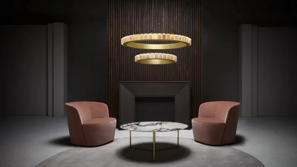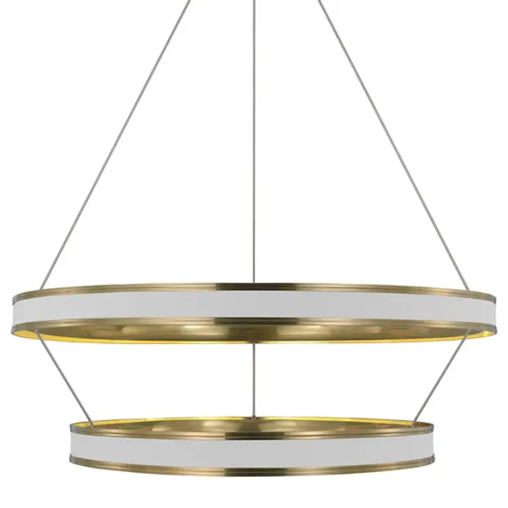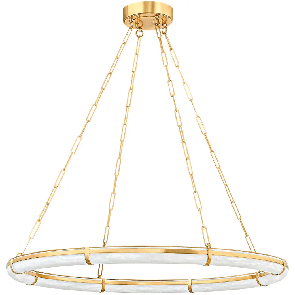 Avalon Halo chandelier by CTO LightingMaterials: satin brass with alabaster stone.Also available in different finishes and materials.Dimensions: D 101 x H 46 cmAll our lamps can be wired according to each country. If sold to the USA it will be wired for the USA for instance.integrated LED - trailing edge dimmable 38w + 67w 2700kweight 50kg (110lbs)stainless steel suspension power cable supplied (adjustable on site).stone markings may varymounts onto 4” junction boxFounded in 1998 by Chris and Clare Turner, CTO Lighting launched their first collection on the guiding principles of designing lights of uncompromising quality, using only the finest materials and working with elite British craftsmen. This collection of lighting symbolised elegance and the excellence of British design and manufacturing; the benchmark for all future collections.