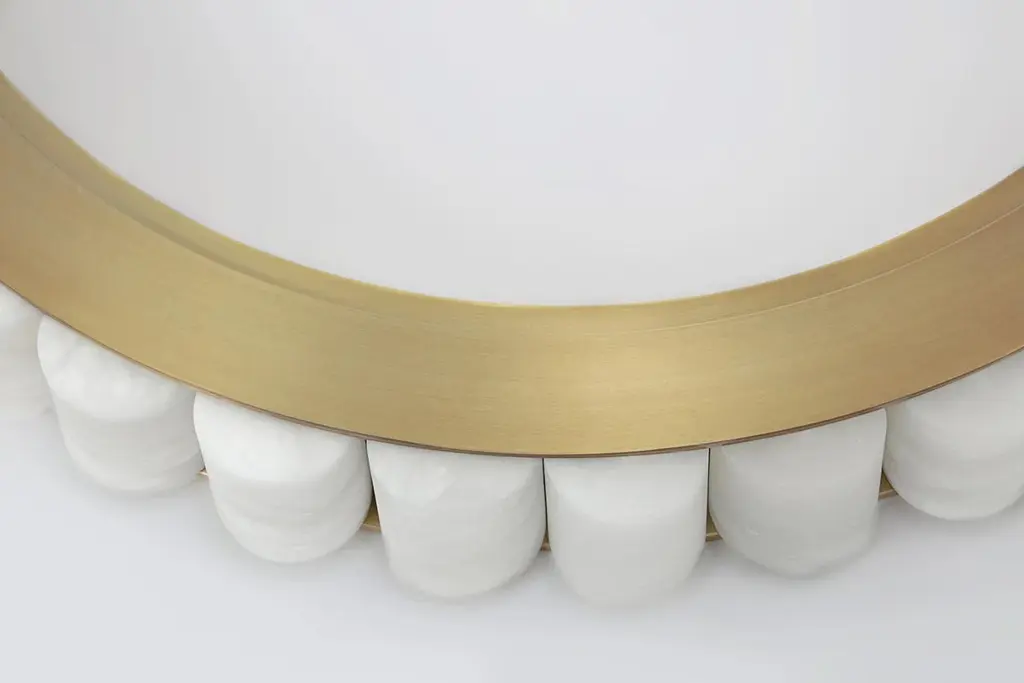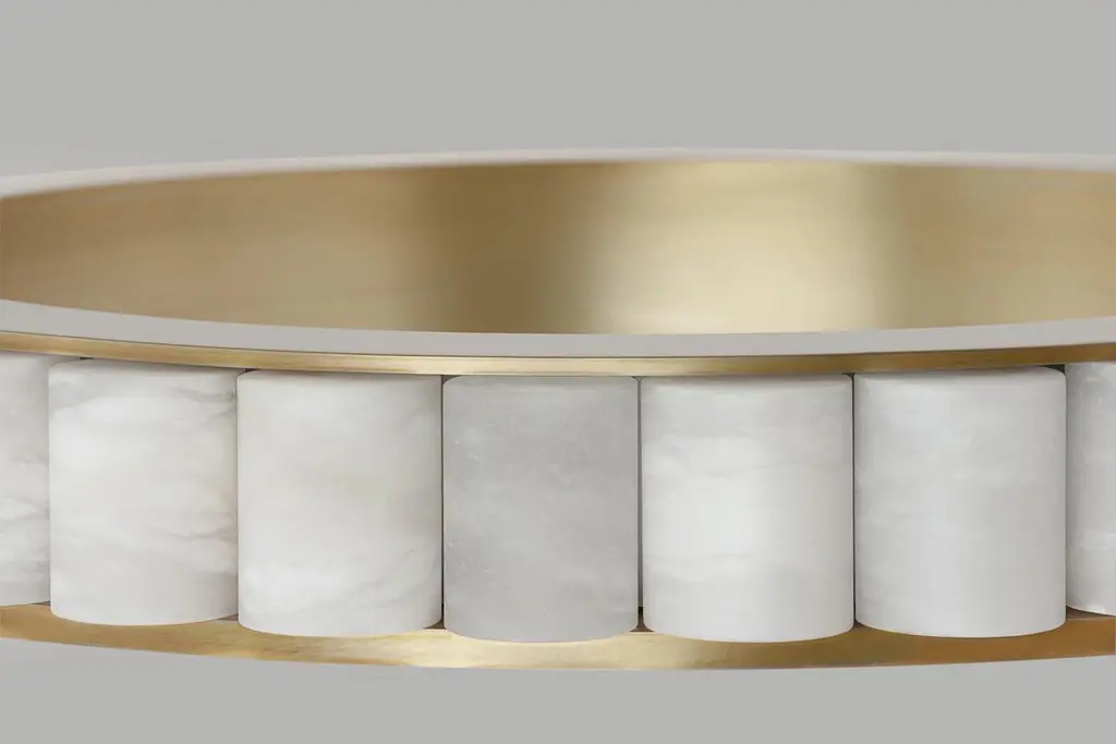 Avalon medium chandelier by CTO LightingMaterials: satin brass with alabaster stone.Also available in different finishes and materials.Dimensions: D 64 x H 31.5 cmAll our lamps can be wired according to each country. If sold to the USA it will be wired for the USA for instance.integrated LED - trailing edge dimmable 38w 2700kweight 20kg (44.1lbs)2500mm (92”) stainless steel suspension power cable (adjustable on site)for installation a minimum total drop of 650mm (25.5”) is requiredstone markings may varymounts onto 4” junction boxFounded in 1998 by Chris and Clare Turner, CTO Lighting launched their first collection on the guiding principles of designing lights of uncompromising quality, using only the finest materials and working with elite British craftsmen. This collection of lighting symbolised elegance and the excellence of British design and manufacturing; the benchmark for all future collections.