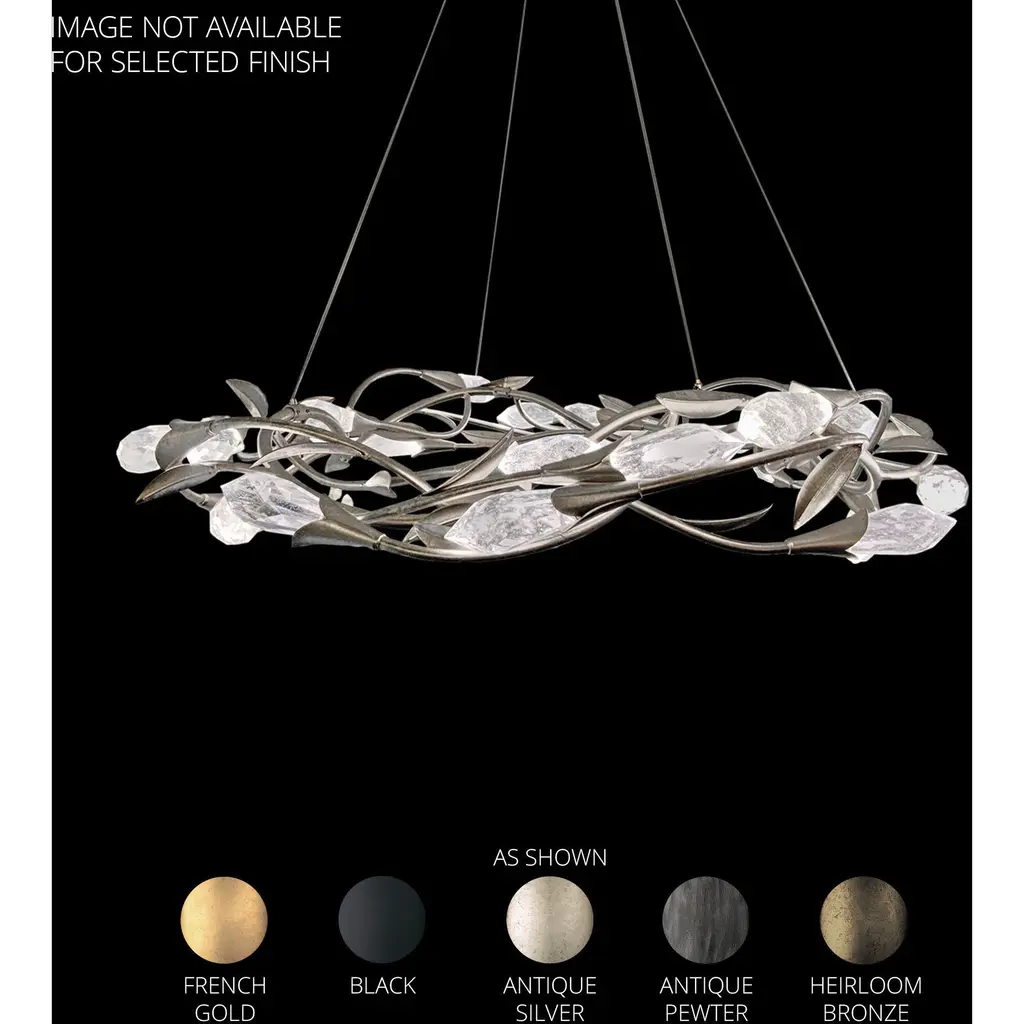 The Avalon Twenty Light Chandelier is a stunning celebration of Mother Nature. Crafted from brass in an antiqued silver leaf finish, an intricately detailed branch showcases gorgeous organic shapes. Sixteen leaves of clear acrylic stem from the opulent branch, beautifully diffusing light to create a serene atmosphere in any interior space. The rounded canopy, also finished in antiqued silver leaf, contains four additional lights.