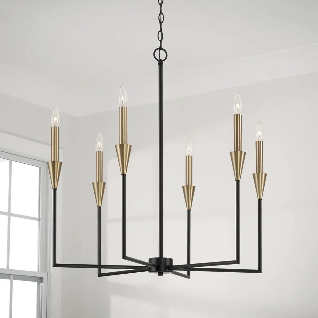 Avant 6 Light 29 Inch Aged Brass And Black Chandelier Ceiling Light