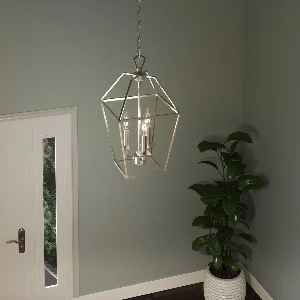 Industrial, ironclad elements reveal a surprisingly airy aesthetic in nickel or Palladian bronze. The Aviary chandelier, available in a variety of sizes, instantly enlivens dull spaces with a bold, angular shape, exposed candles and thick chain suspension. Free of superfluous scrolls and flourishes, Aviary speaks to simplicity of design rooted in farmhouse craftsmanship.