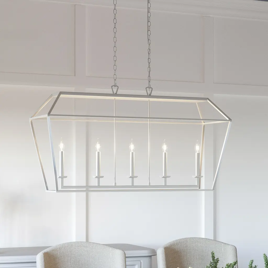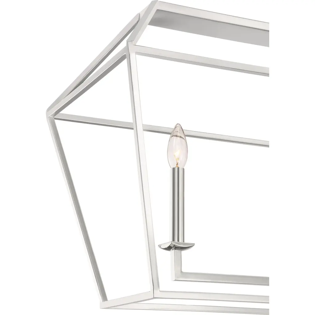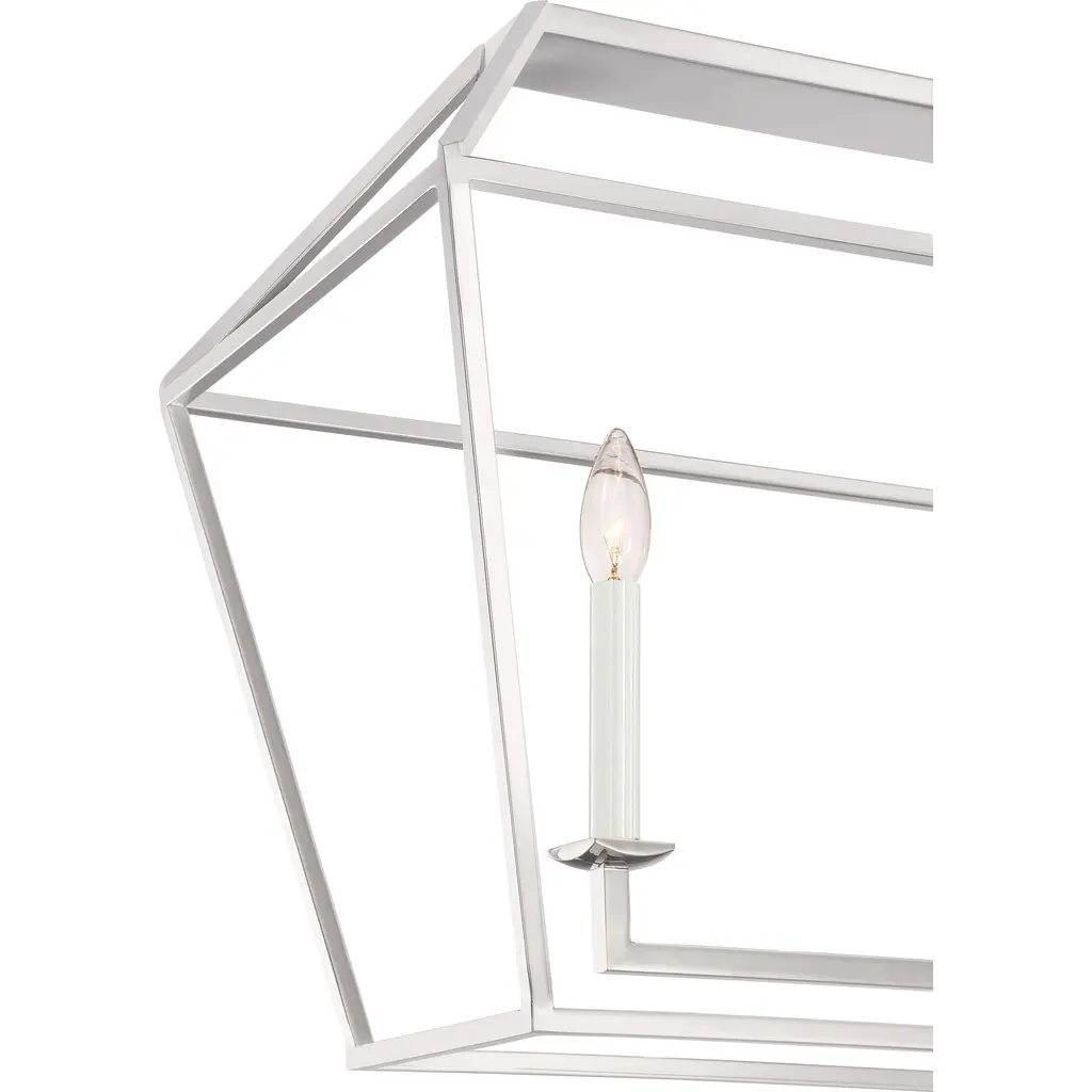 Industrial, ironclad elements reveal a surprisingly airy aesthetic in nickel or Palladian bronze. The Aviary chandelier, available in a variety of sizes, instantly enlivens dull spaces with a bold, angular shape, exposed candles and thick chain suspension. Free of superfluous scrolls and flourishes, Aviary speaks to simplicity of design rooted in farmhouse craftsmanship.