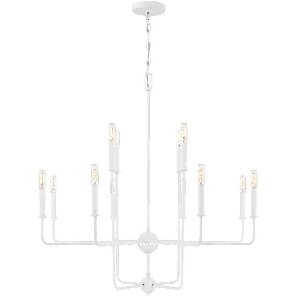 Elegant in its simplicity, the Savoy House Avondale 12-light chandelier brings streamlined style to any space. Finished in Bisque White. Avondale is 33.75" in height and 34" in width. It uses twelve candelabra size bulbs of up to 60 watts per bulb. Bulbs not included.
