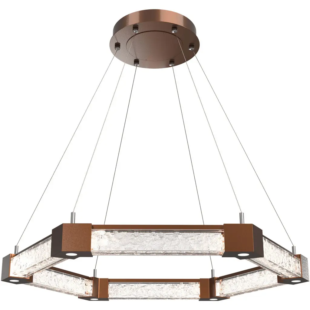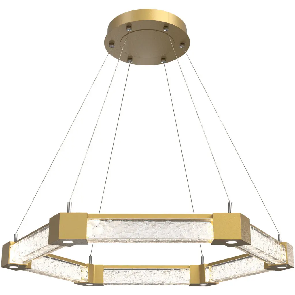 Axis Hexagonal Ring Chandelier-35-Novel Brass-Clear Textured Cast Glass-Stainless Steel Cable-LED
