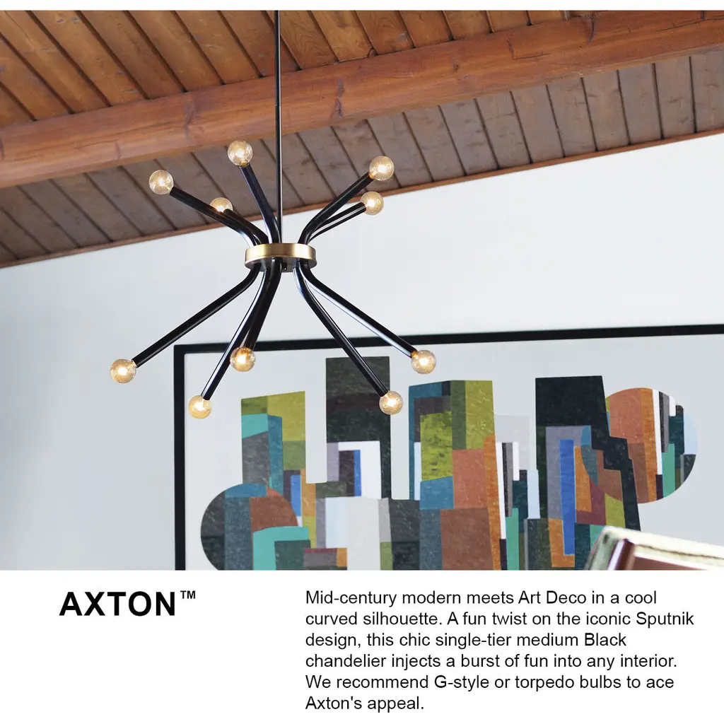 Mid-century modern meets Art Deco in a cool curved silhouette. A fun twist on the iconic Sputnik design, this chic chandelier injects a burst of fun into any interior. We recommend G-style or torpedo bulbs to ace Axton’s appeal.